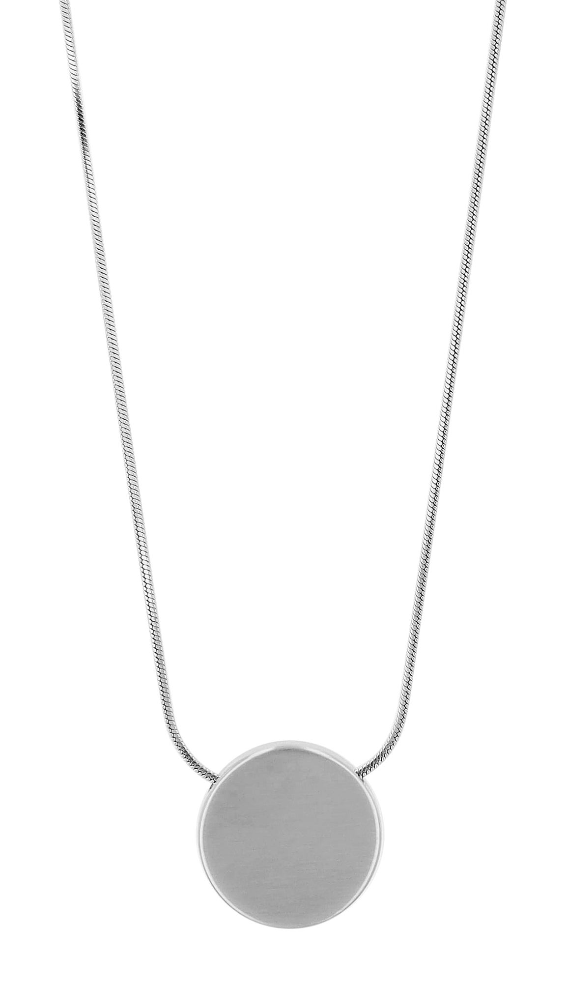 De ketting is gemaakt van roestvrij staal in een slangenpatroon. De blikvanger van dit sieraad is de ronde en graveerbare munthanger, die een diameter heeft van 16,5 mm en een materiaaldikte van 2,5 mm. De ketting kan worden geopend en gesloten met een karabijnsluiting, die ook van roestvrij staal is gemaakt. Er is ook een verlengkettinkje van 5 cm bevestigd, zodat je de lengte kunt variëren en het aan elke outfit kunt aanpassen. Verkrijgbaar in twee kleuren en met een lengte van 42 cm en een dikte van 1 mm. Maak van dit accessoire iets speciaals met een persoonlijke gravure.