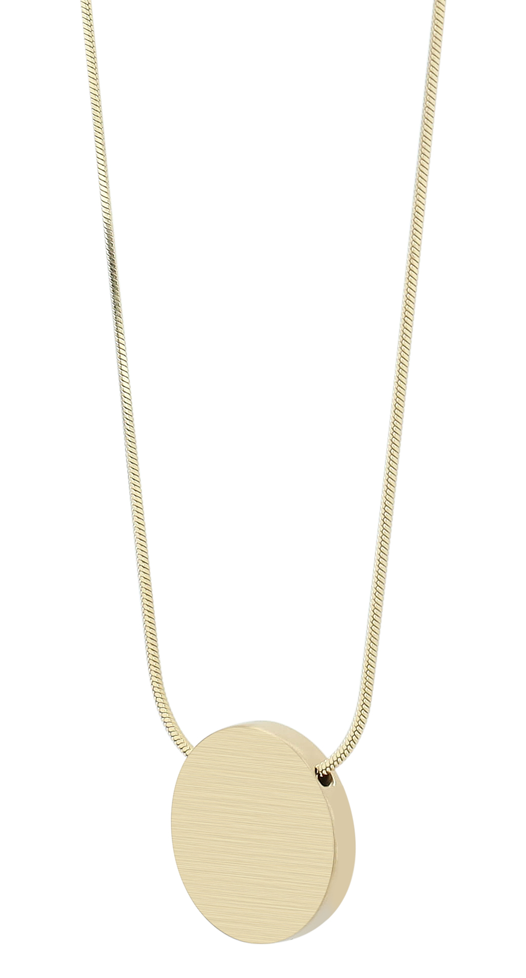 De ketting is gemaakt van roestvrij staal in een slangenpatroon. De blikvanger van dit sieraad is de ronde en graveerbare munthanger, die een diameter heeft van 16,5 mm en een materiaaldikte van 2,5 mm. De ketting kan worden geopend en gesloten met een karabijnsluiting, die ook van roestvrij staal is gemaakt. Er is ook een verlengkettinkje van 5 cm bevestigd, zodat je de lengte kunt variëren en het aan elke outfit kunt aanpassen. Verkrijgbaar in twee kleuren en met een lengte van 42 cm en een dikte van 1 mm. Maak van dit accessoire iets speciaals met een persoonlijke gravure.