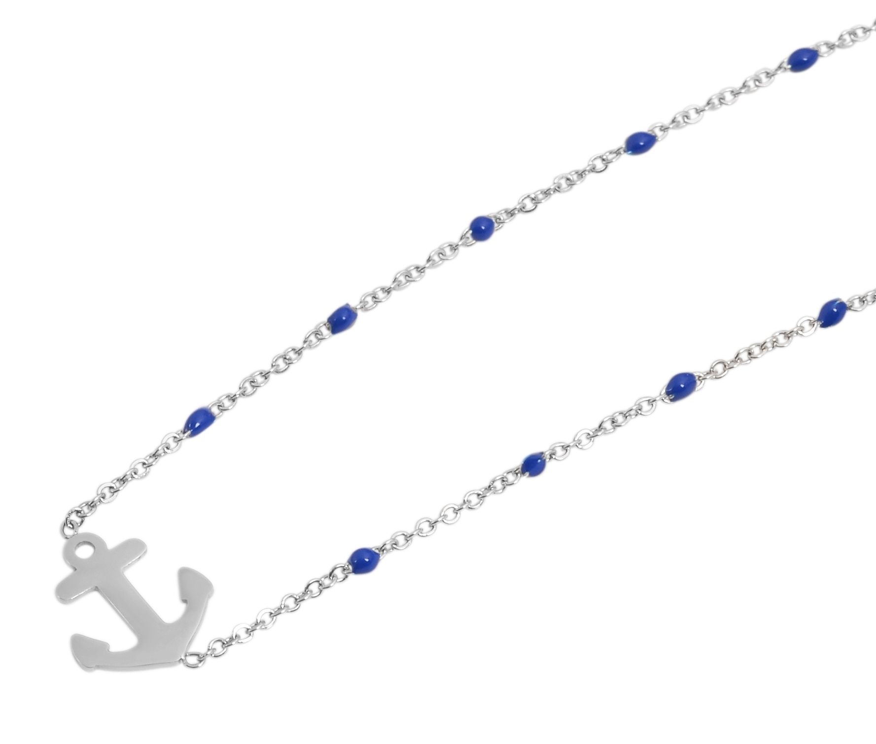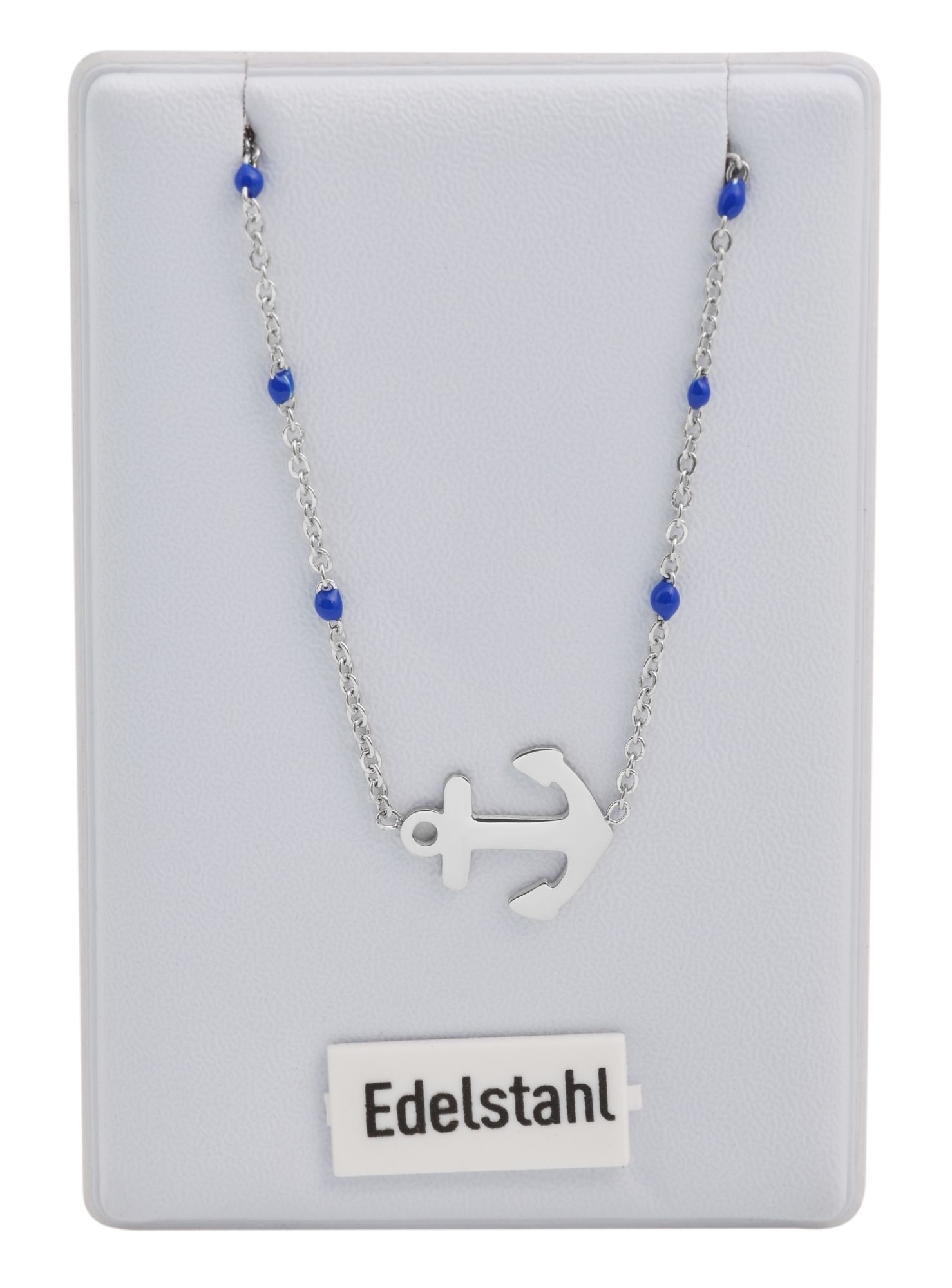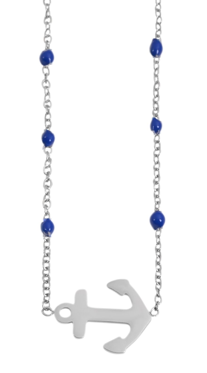 Productinformatie "Accent ankerketting van roestvrij staal, ankerhanger, 43+5 cm, zilver/blauw"