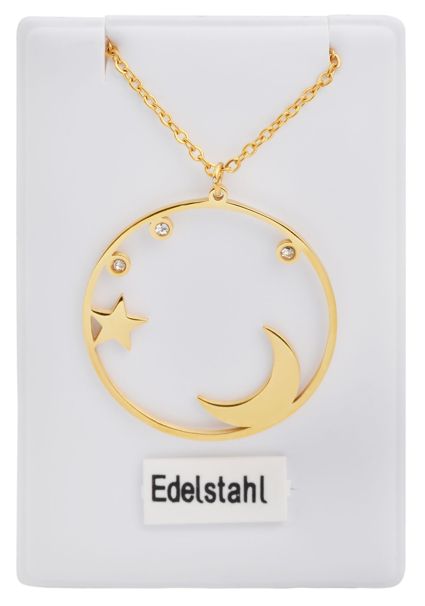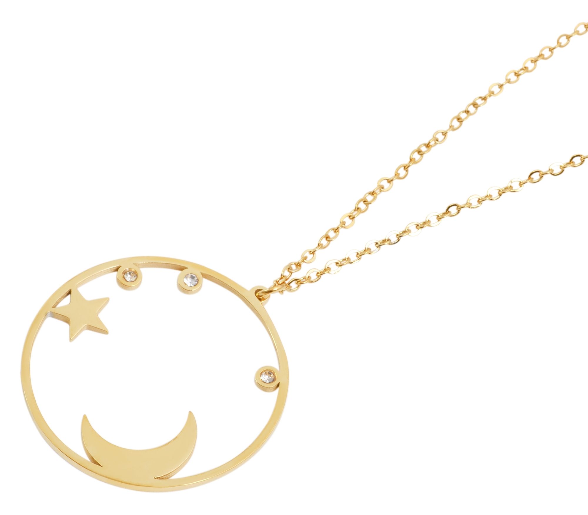 Productinformatie "Accent ankerketting van roestvrij staal, ronde hanger met maan en sterren, goudkleurig"