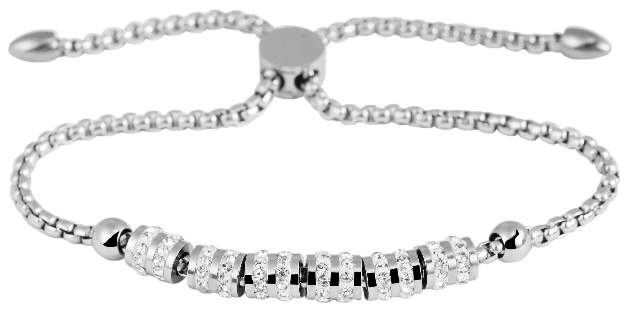 De filigraan damesarmband van het merk Akzent is gemaakt van roestvrij staal in een Venetiaans patroon en is verkrijgbaar in verschillende kleuren en met verschillend gevormde kralen. Dankzij de praktische koordsluiting zit de armband perfect om de pols en kan hij individueel worden aangepast tot een maximale lengte van ca. 24 cm.