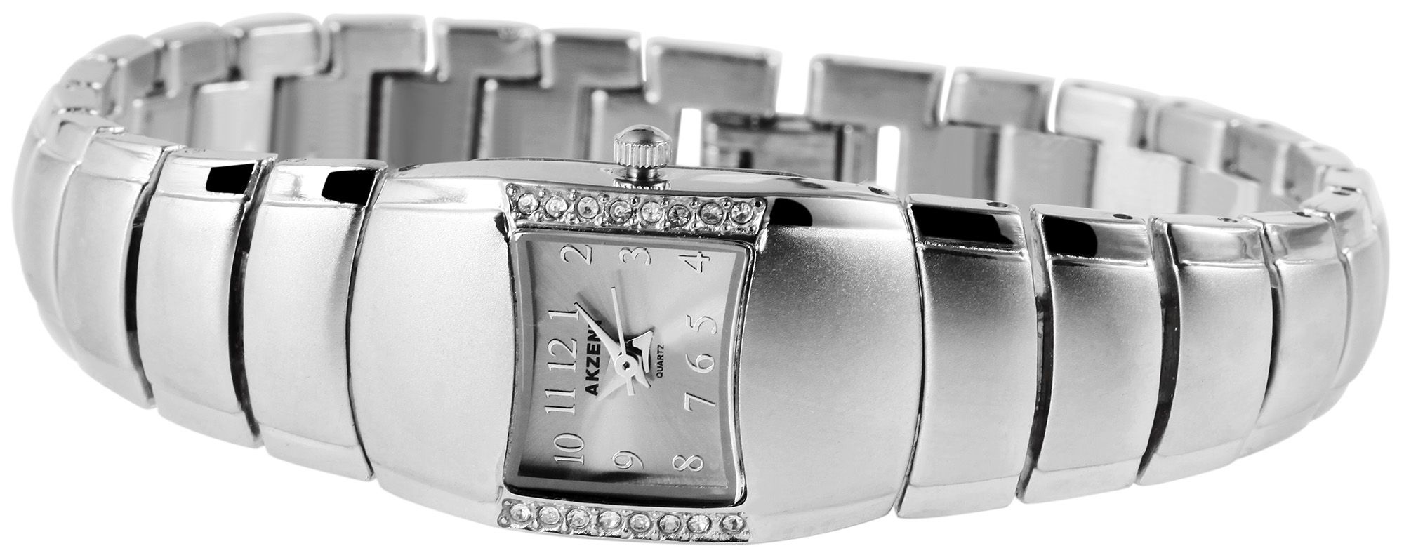 Het Akzent analoge dameshorloge heeft een hoogwaardig quartz uurwerk. De metalen armband is 17 mm breed en opent met een clipsluiting. De totale lengte is 20 cm. De metalen kast met mineraalglas meet 19 mm en is 8 mm hoog. De kast is afgewerkt met een kristallen rand. De kastdeksel is gemaakt van roestvrij staal. Het horloge is getest tot 3 ATM.