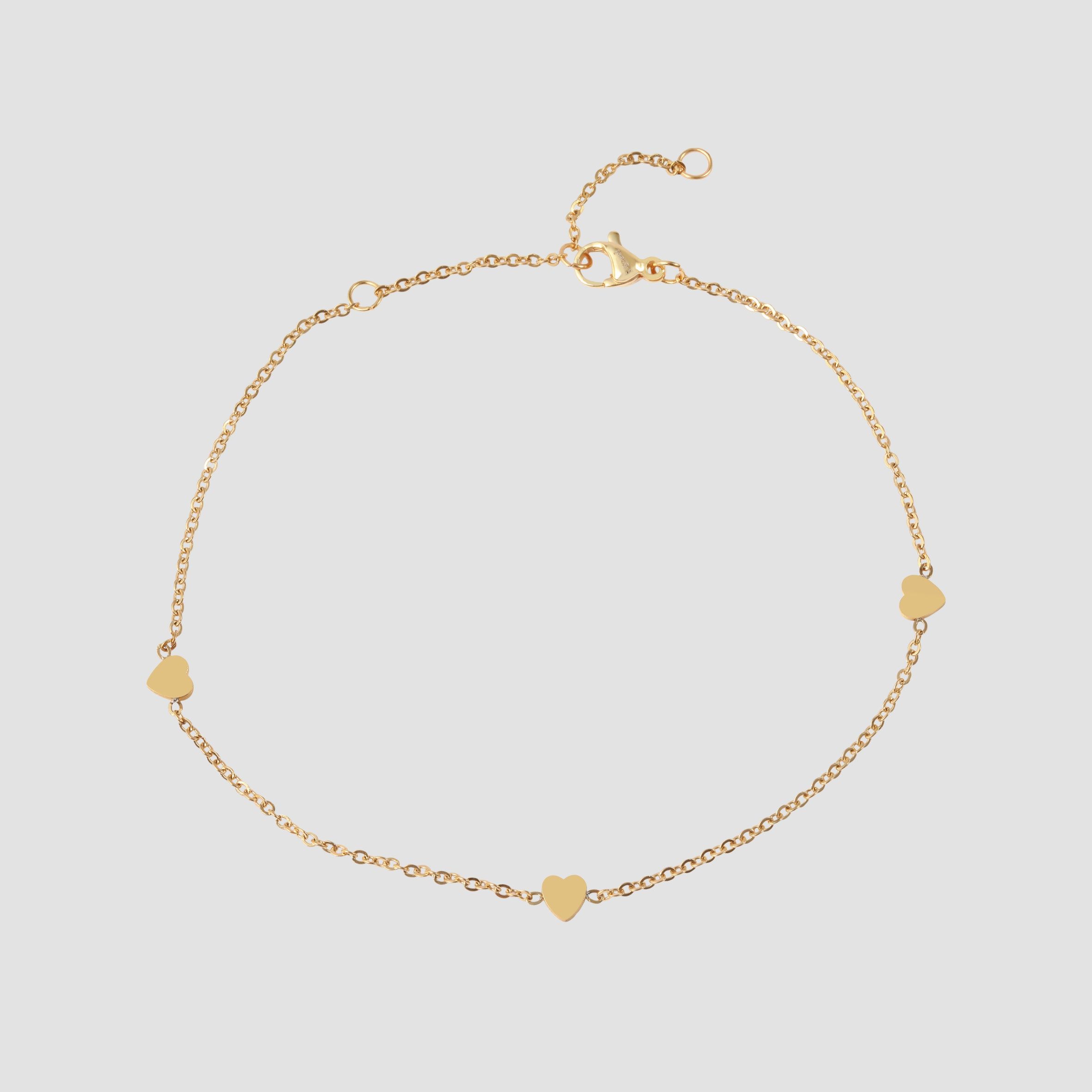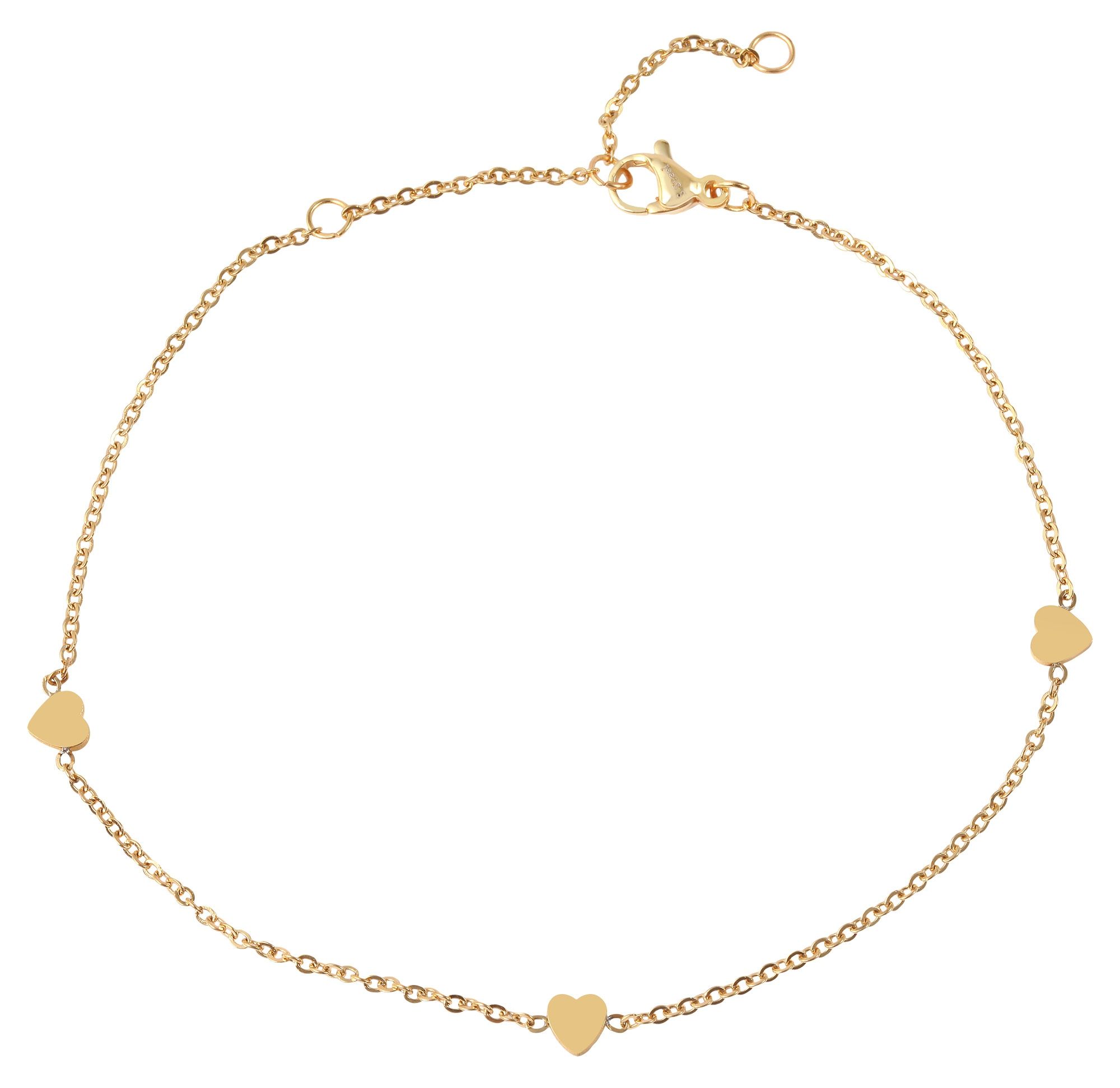 Productinformatie "Accent enkelbandje "Michéle" van roestvrij staal, hartvormige elementen, geïoniseerd, goudkleurig"