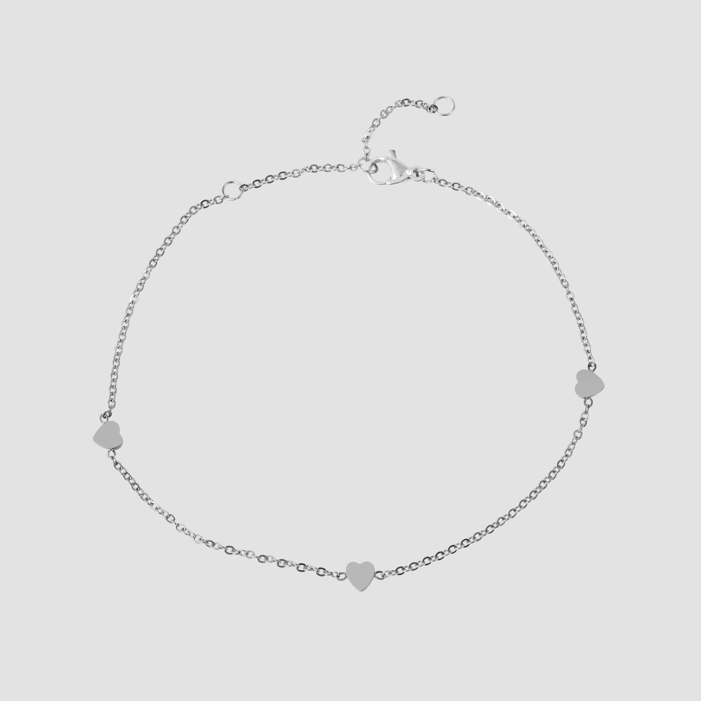 Productinformatie "Accent enkelbandje "Michéle" van roestvrij staal, hartvormige elementen, zilverkleurig"