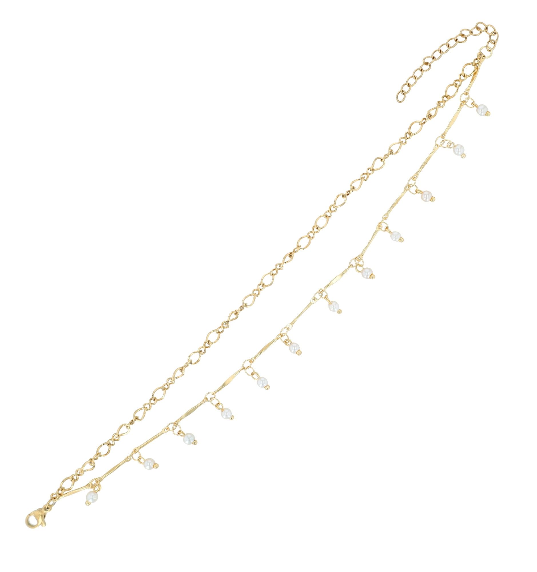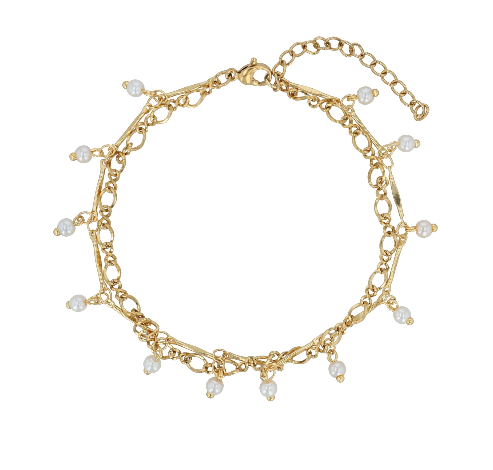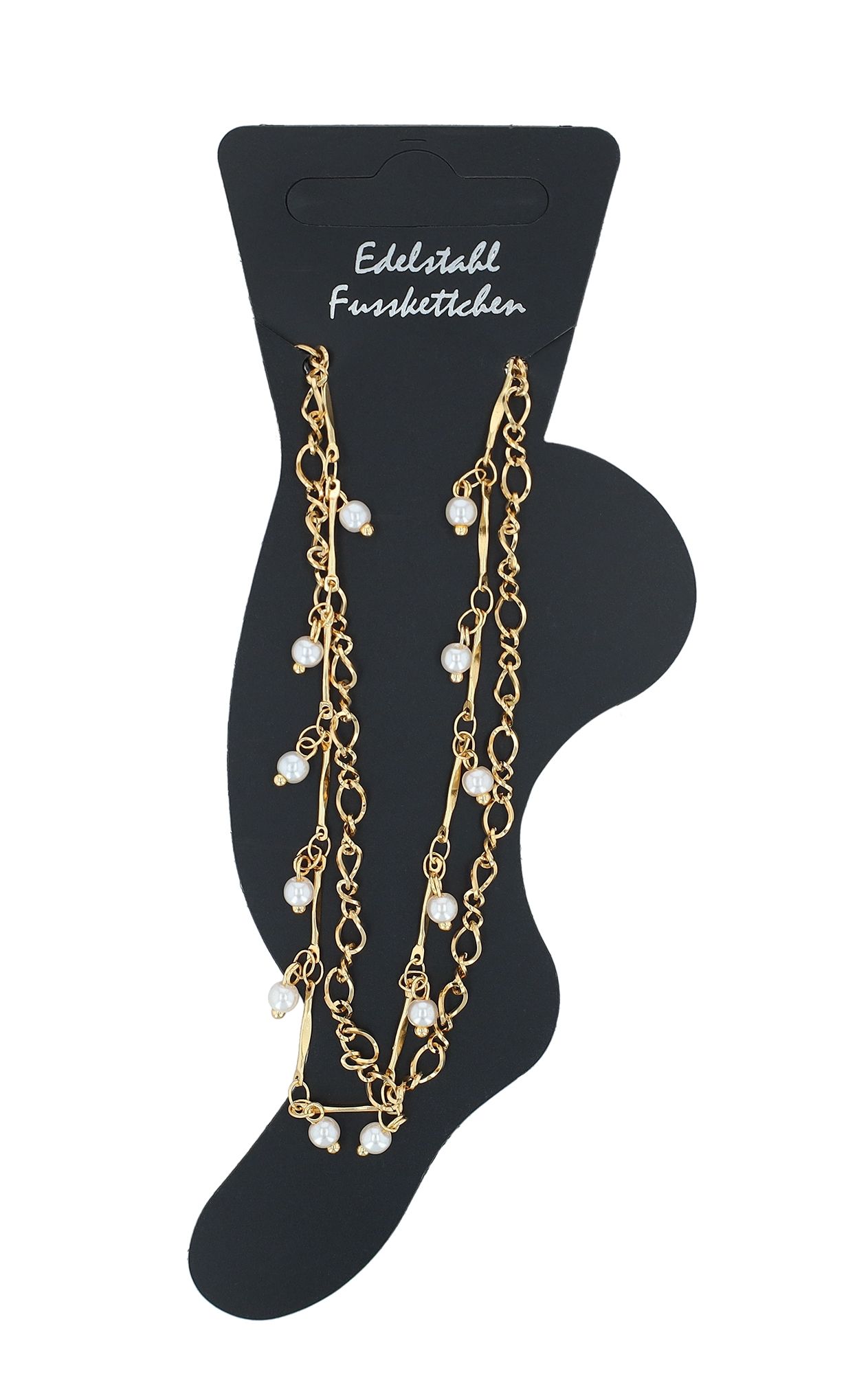 Productinformatie "Accent enkelbandje "Myrilla", roestvrij staal met imitatieparels, dubbele rij, goudkleurig"