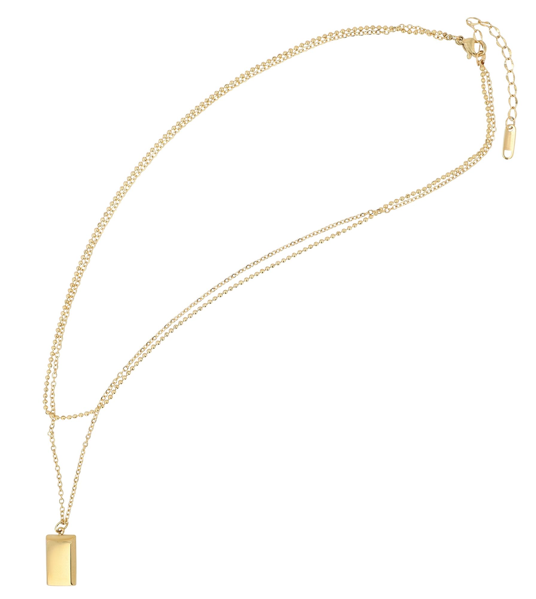 Productinformatie "Accent gelaagd collier met gegraveerde hanger, roestvrij staal, goudkleurig"