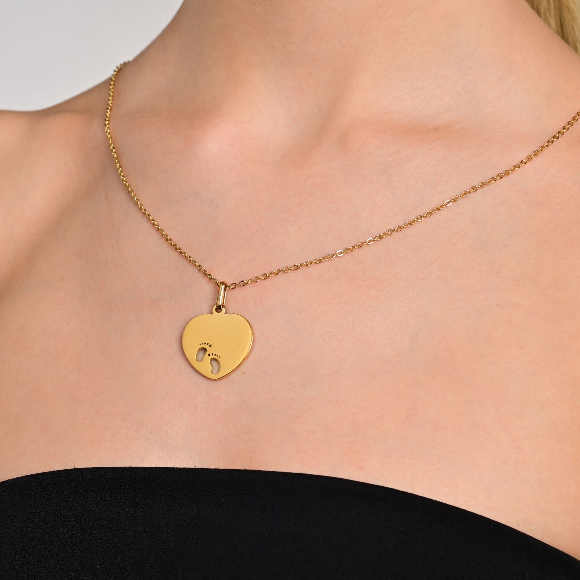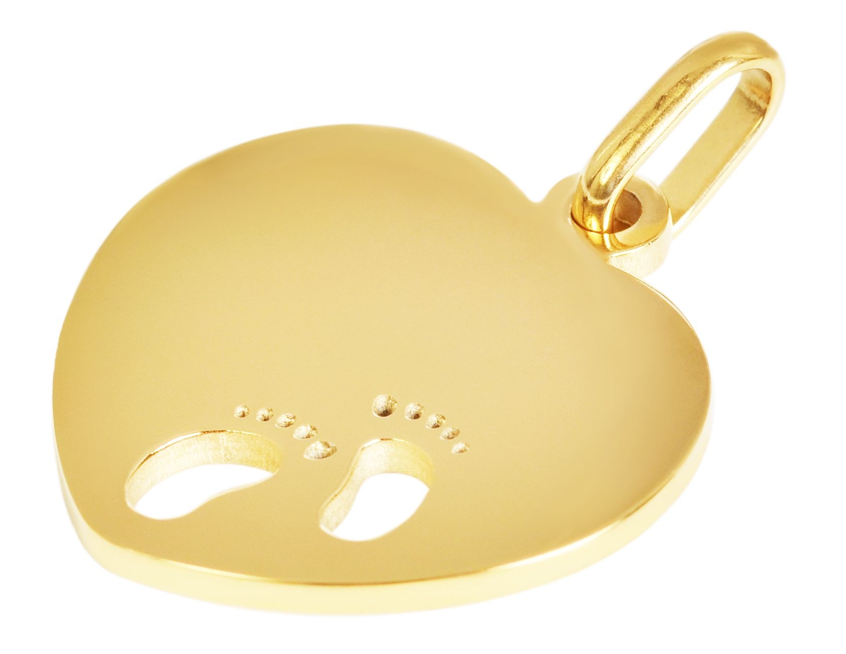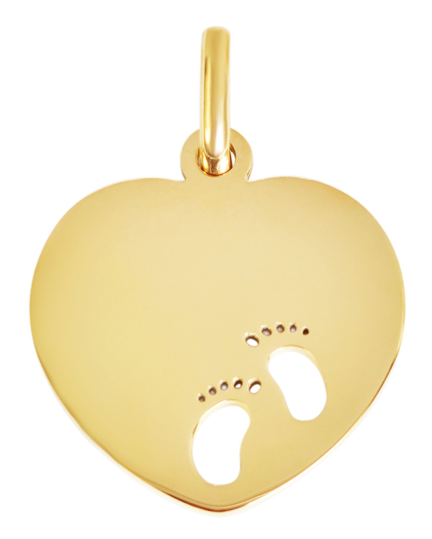 Productinformatie "Accent hanger van roestvrij staal, graveerplaatje, hart, babyvoetjes, goudkleurig"