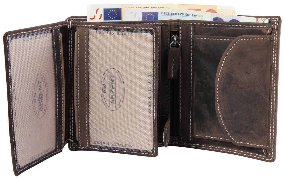 Productinformatie "Accent herenportemonnee in donkerbruin. Formaat 9 x 12 cm."