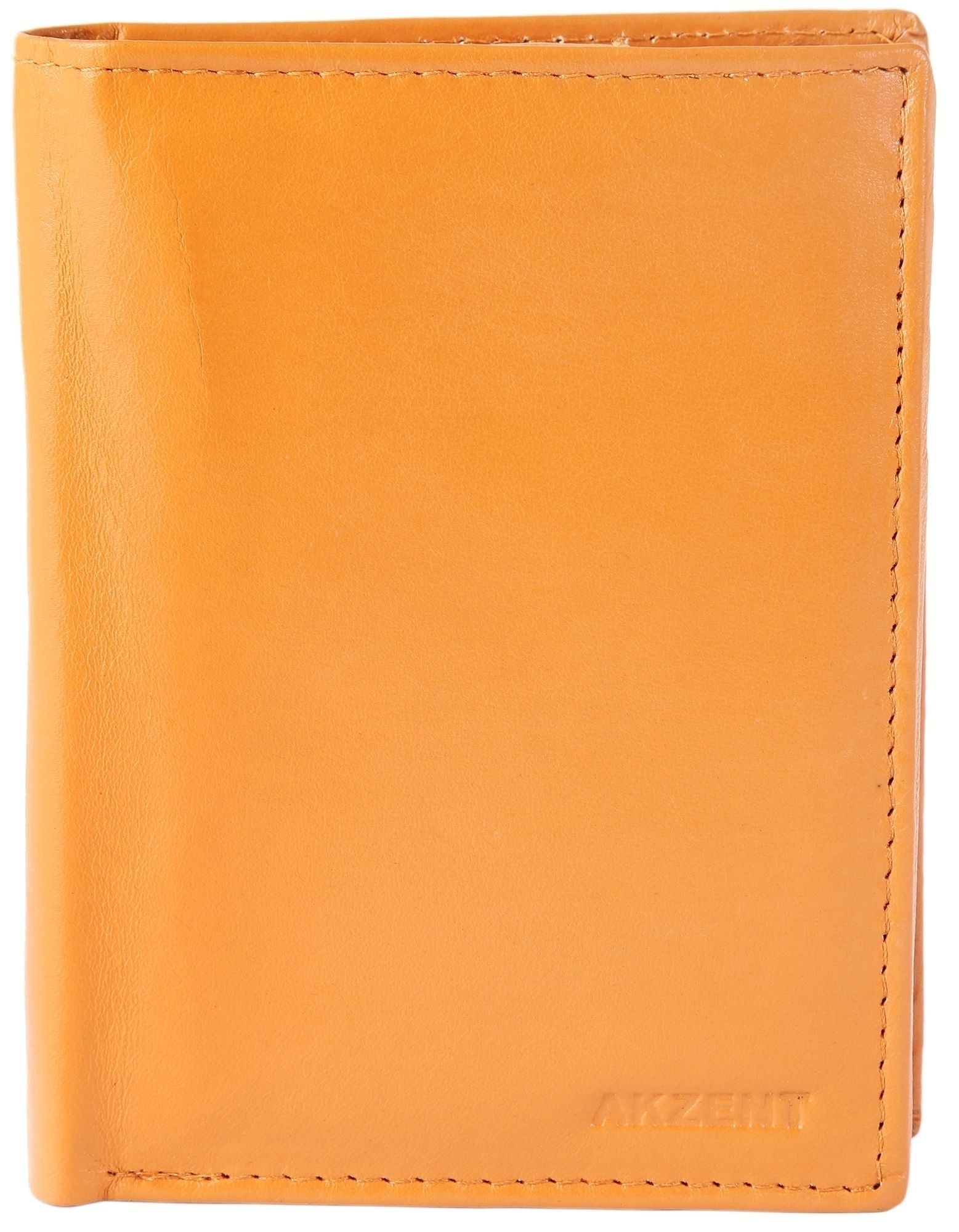 Accent herenportemonnee van echt leer. De portemonnee is 9 cm breed en 12 cm hoog. De kleur is lichtbruin. Hij heeft 2 compartimenten voor biljetten, een klein vakje voor kleingeld, 10 vakjes voor creditcards en een transparant vak voor ID-kaarten.