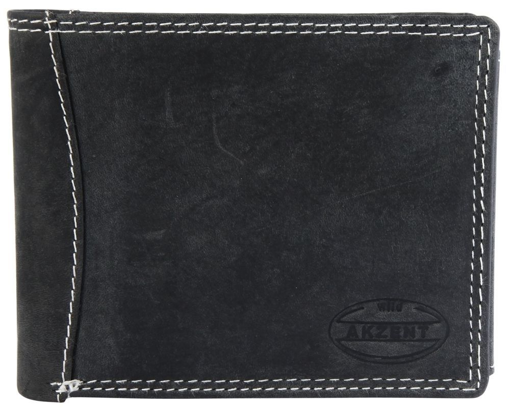 Productinformatie "Accent herenportemonnee van echt leer in zwart. Formaat 12 x 9 cm."