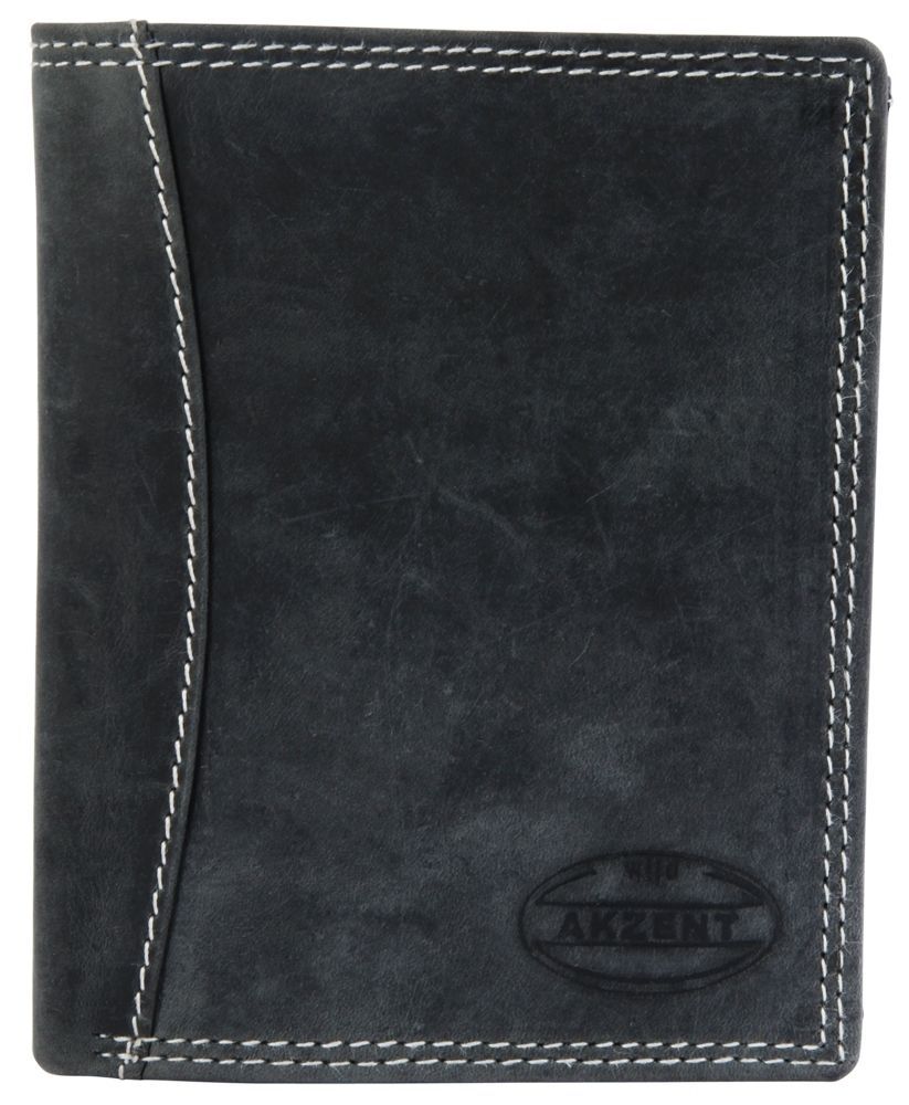Productinformatie "Accent herenportemonnee van echt leer in zwart. Formaat 9 x 12 cm."