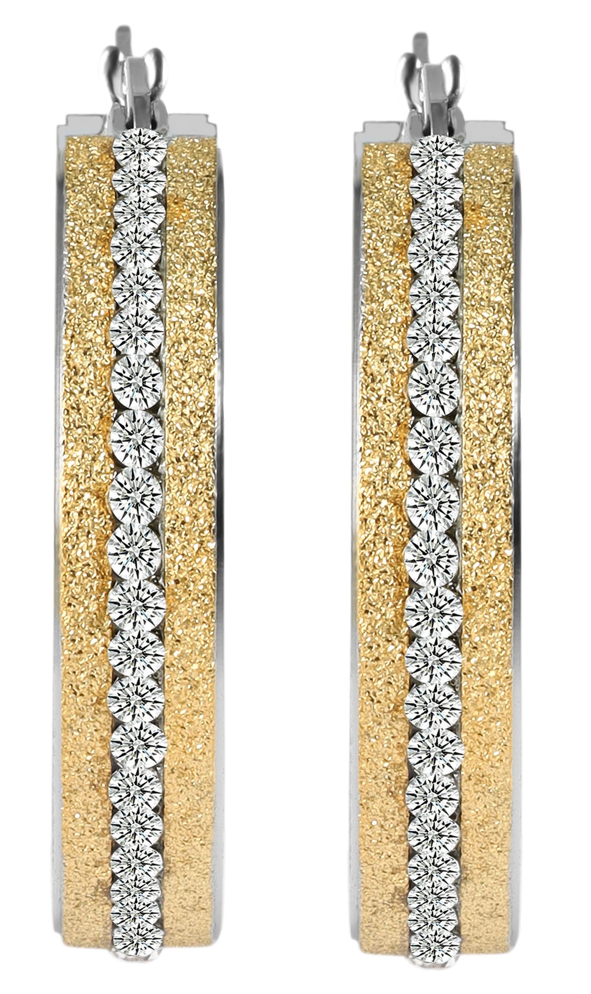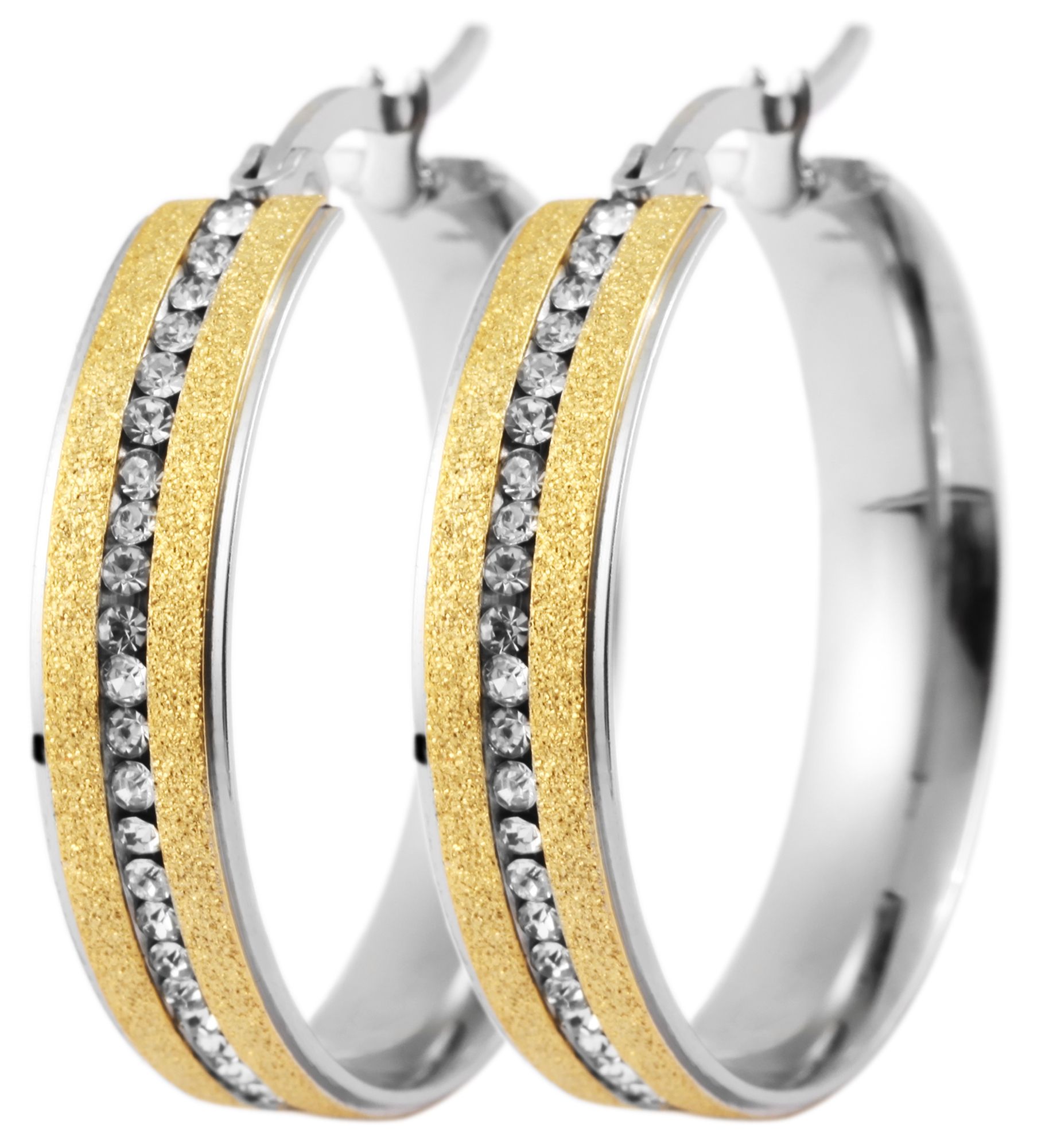 Productinformatie "Accent hoepel oorbellen, roestvrij staal, similibre zetting, gezandstraald"