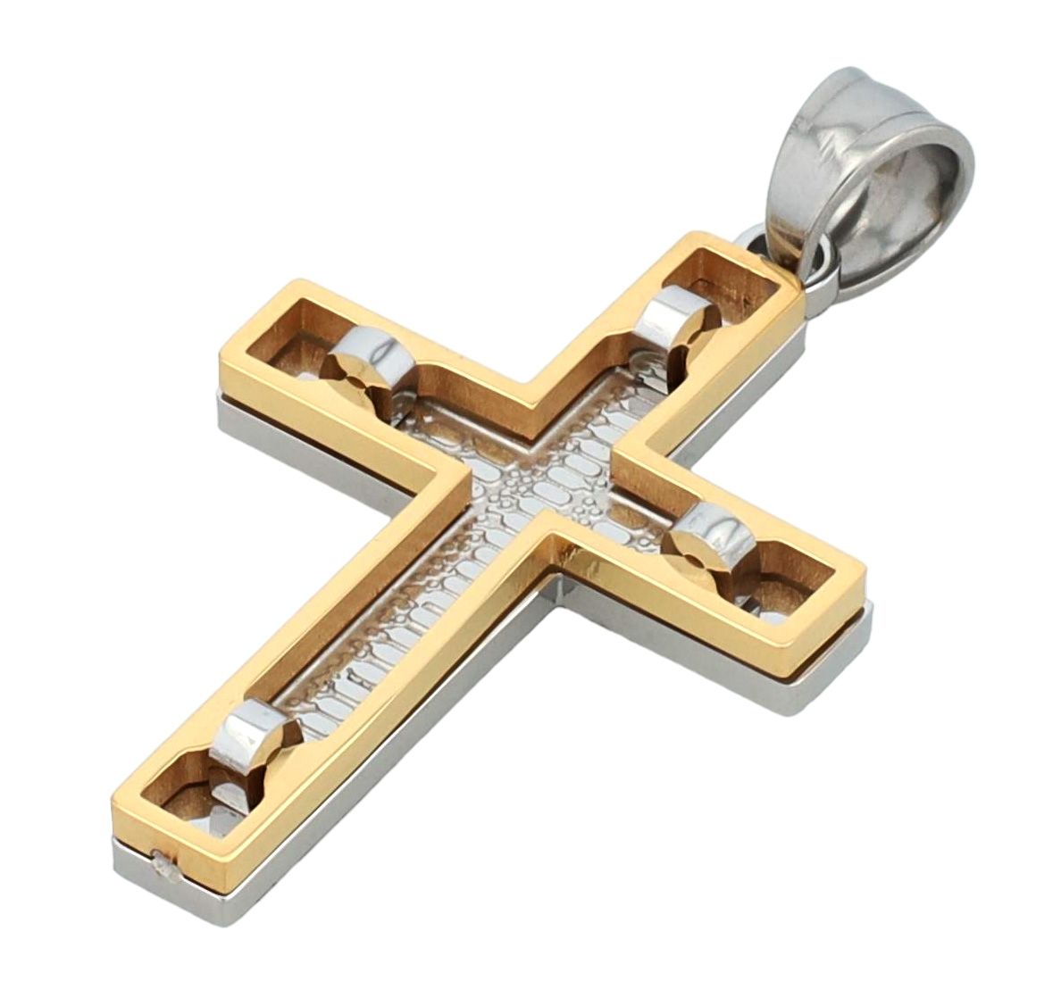 Productinformatie "Accent kruis hanger "Marlow", roestvrij staal, modieus ontwerp, tweekleurig (zilver- en goudkleurig)"