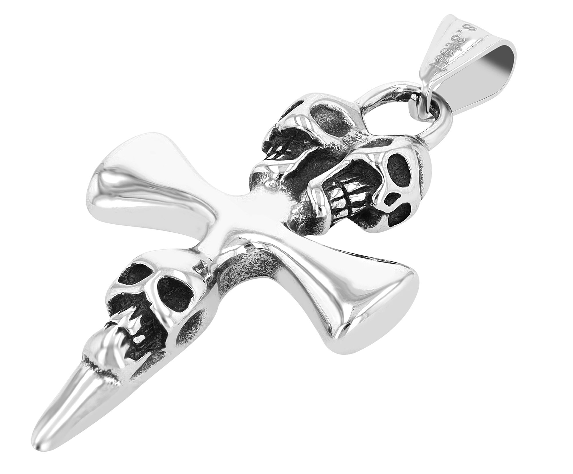 Productinformatie "Accent kruis hanger met schedels van roestvrij staal, zilverkleurig"