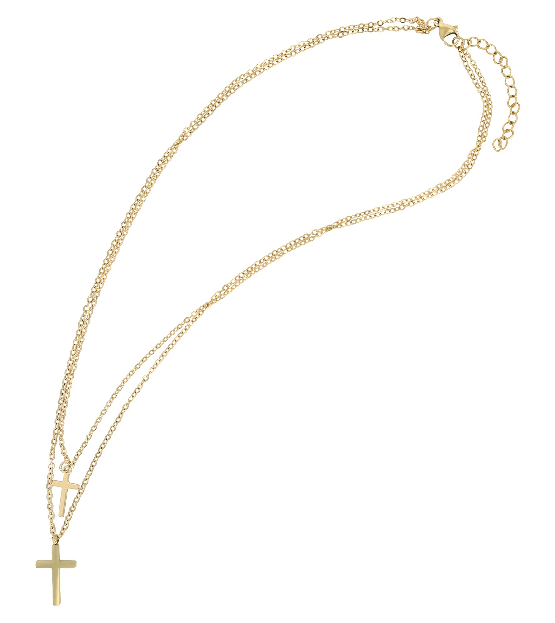 Productinformatie "Accent laagjesketting "Adery" met twee kruishangers, roestvrij staal, goudkleurig"