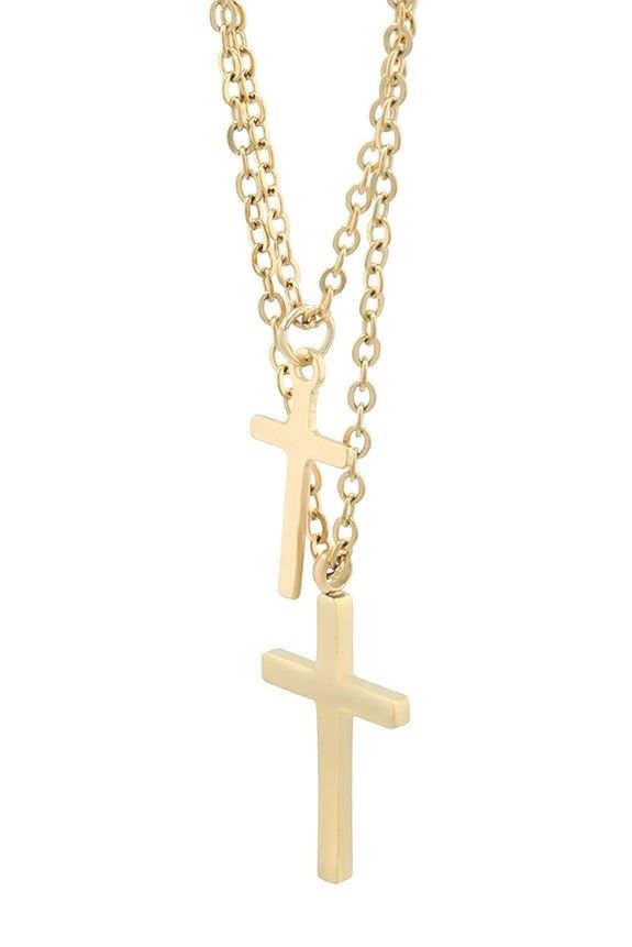 Het hoogtepunt van deze ketting zijn de twee kruishangers aan de kettingen. De grotere kruishanger van 22 x 12 x 1 mm en de kleinere van 16 x 8,5 x 0,5 mm geven deze ketting een bijzondere expressiviteit. Het eenvoudige maar elegante ontwerp van de kruizen maakt ze tot een tijdloos accessoire dat bij elke gelegenheid gedragen kan worden.