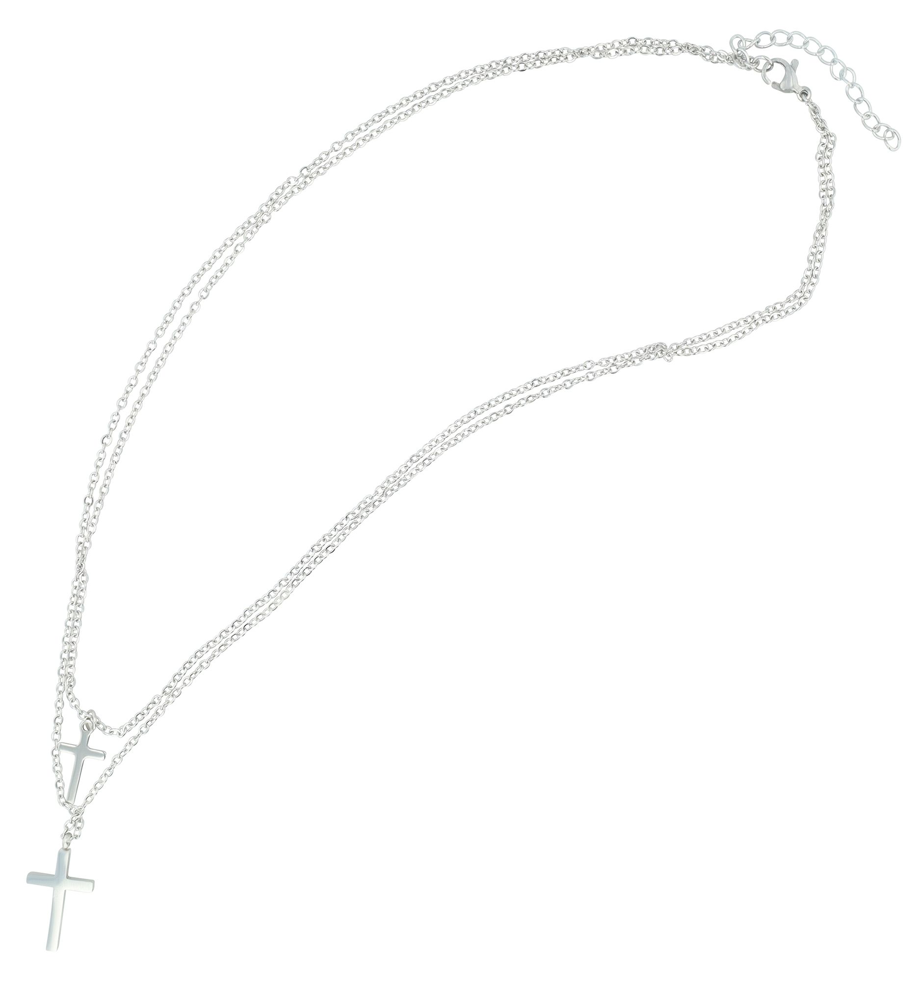 Productinformatie "Accent laagjesketting "Adery" met twee kruishangers, roestvrij staal, zilverkleurig"
