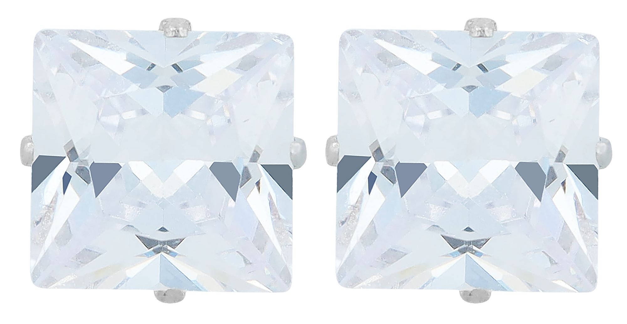Productinformatie "Accent oorbel "Wes" van roestvrij staal, vierkante zirkonia zetting, 6 x 6 mm"