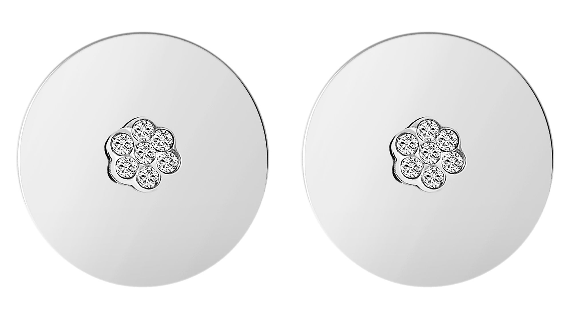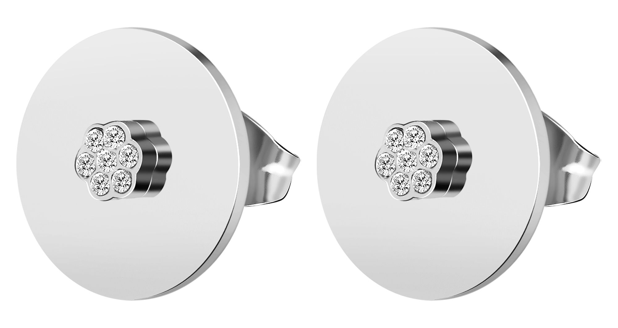 Productinformatie "Accent oorbellen, roestvrij staal, bloemvormige similé zetting, rond, zilverkleurig"