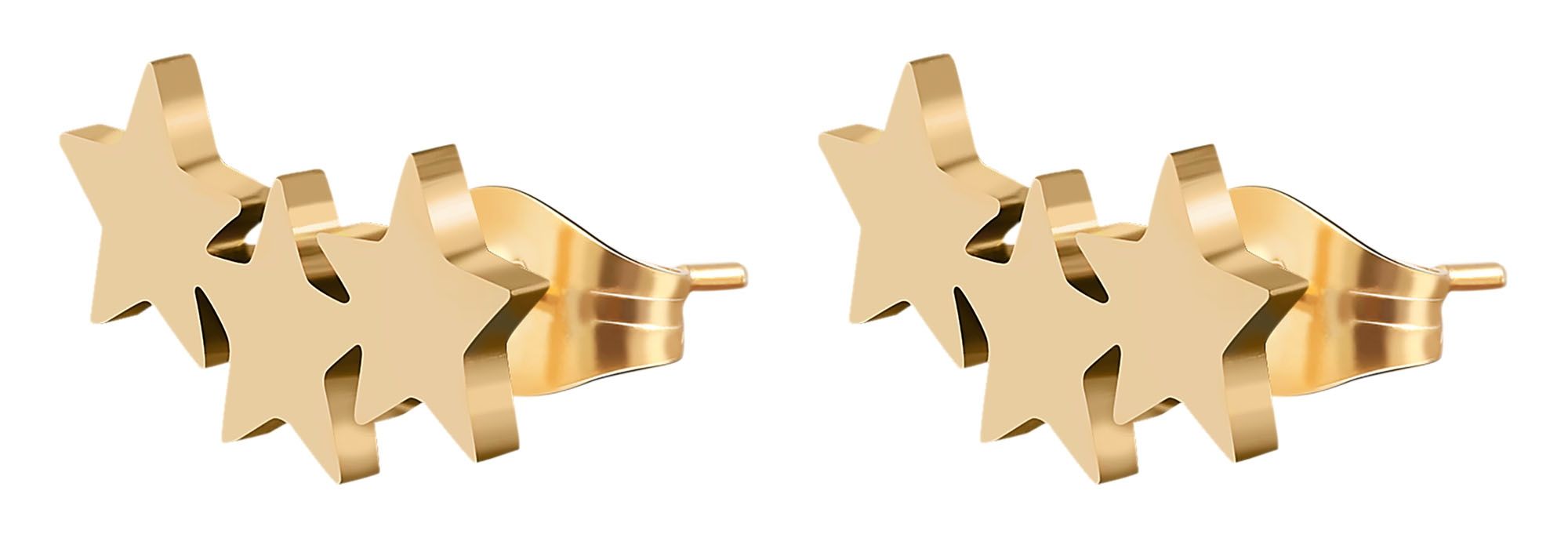 Productinformatie "Accent oorbellen van roestvrij staal, rij sterren, geïoniseerd, goudkleurig"
