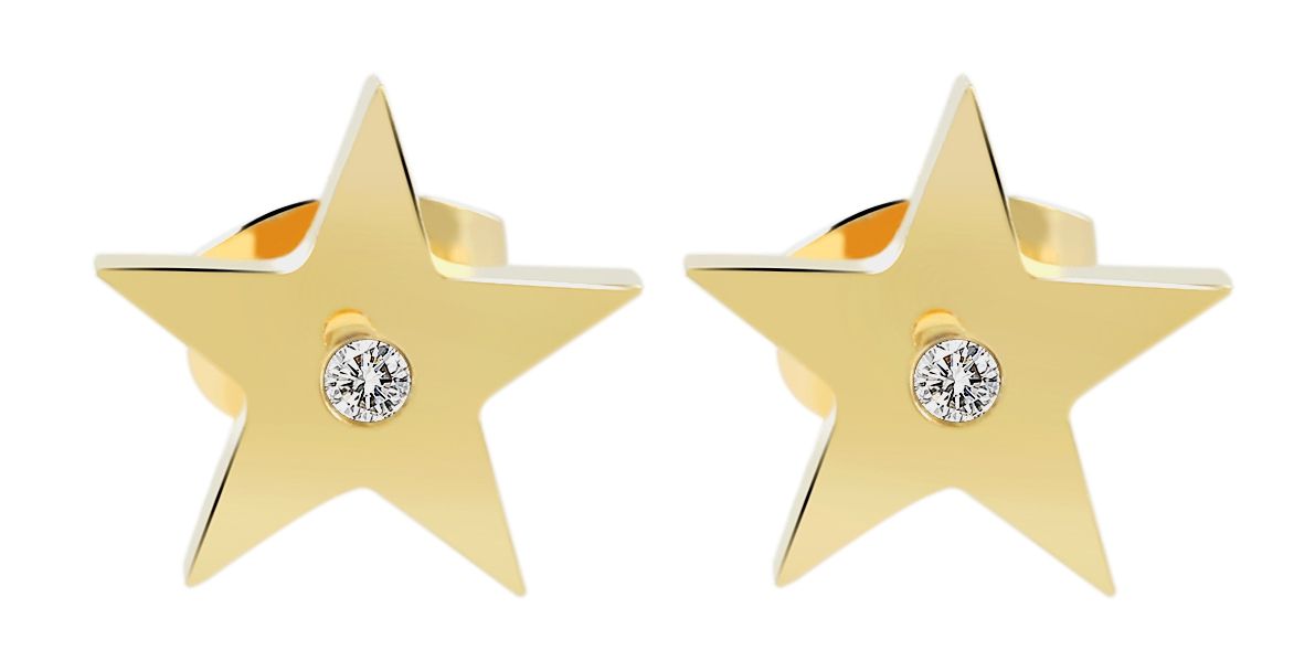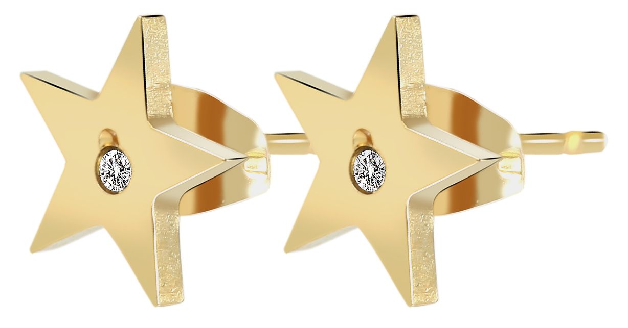 Productinformatie "Accent oorbellen van roestvrij staal, ster met similibre zetting, geïoniseerd, goudkleurig"