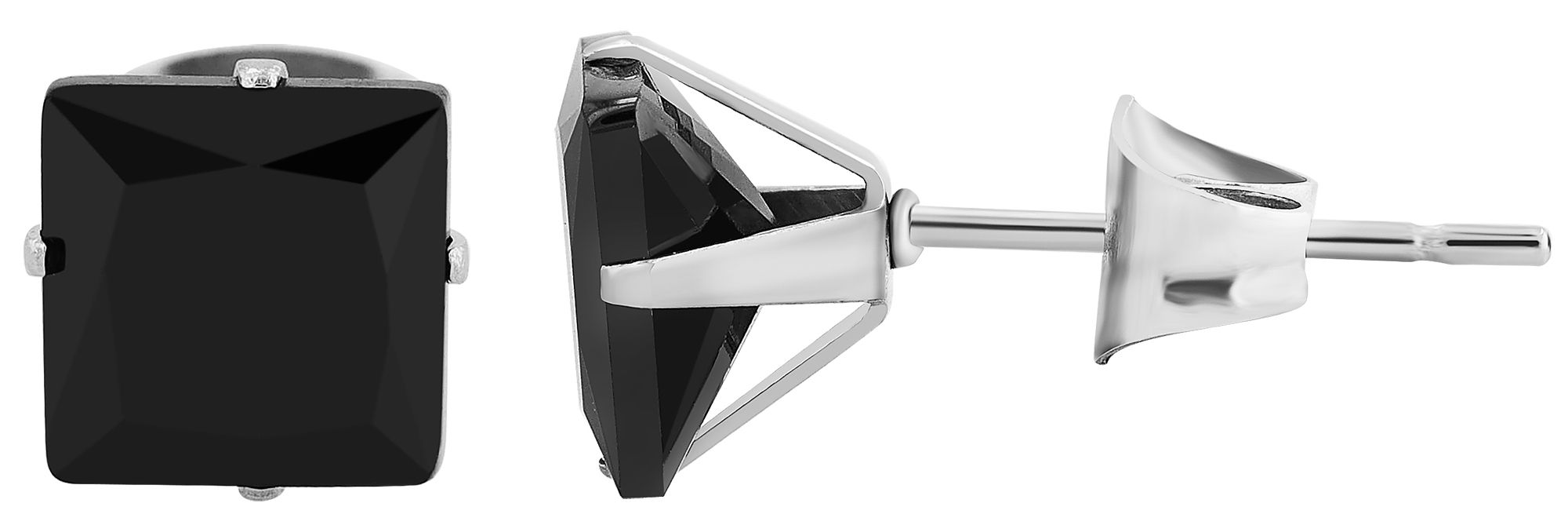 De oorbellen zijn verkrijgbaar met een 6 mm of 7 mm zwarte zirkonia steen, die stevig wordt vastgehouden door vier klauwen. De vierkante vorm van de zirkonia steen en de precieze zetting zorgen voor een stevige grip en een elegante look. De praktische push-in sluiting met vleugelschroef garandeert een stevige pasvorm en maakt het gemakkelijker om de oorstekers aan te doen en af te doen.