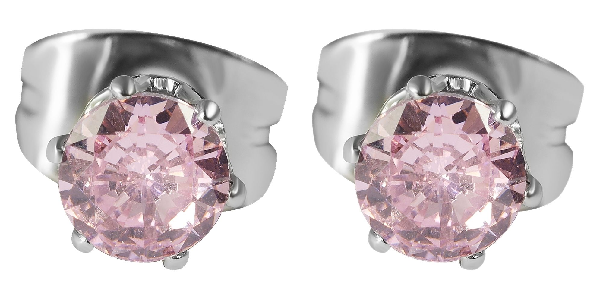 Productinformatie "Accent oorsteker "Taj" van roestvrij staal, roze zirkonia zetting Ø 5 mm"