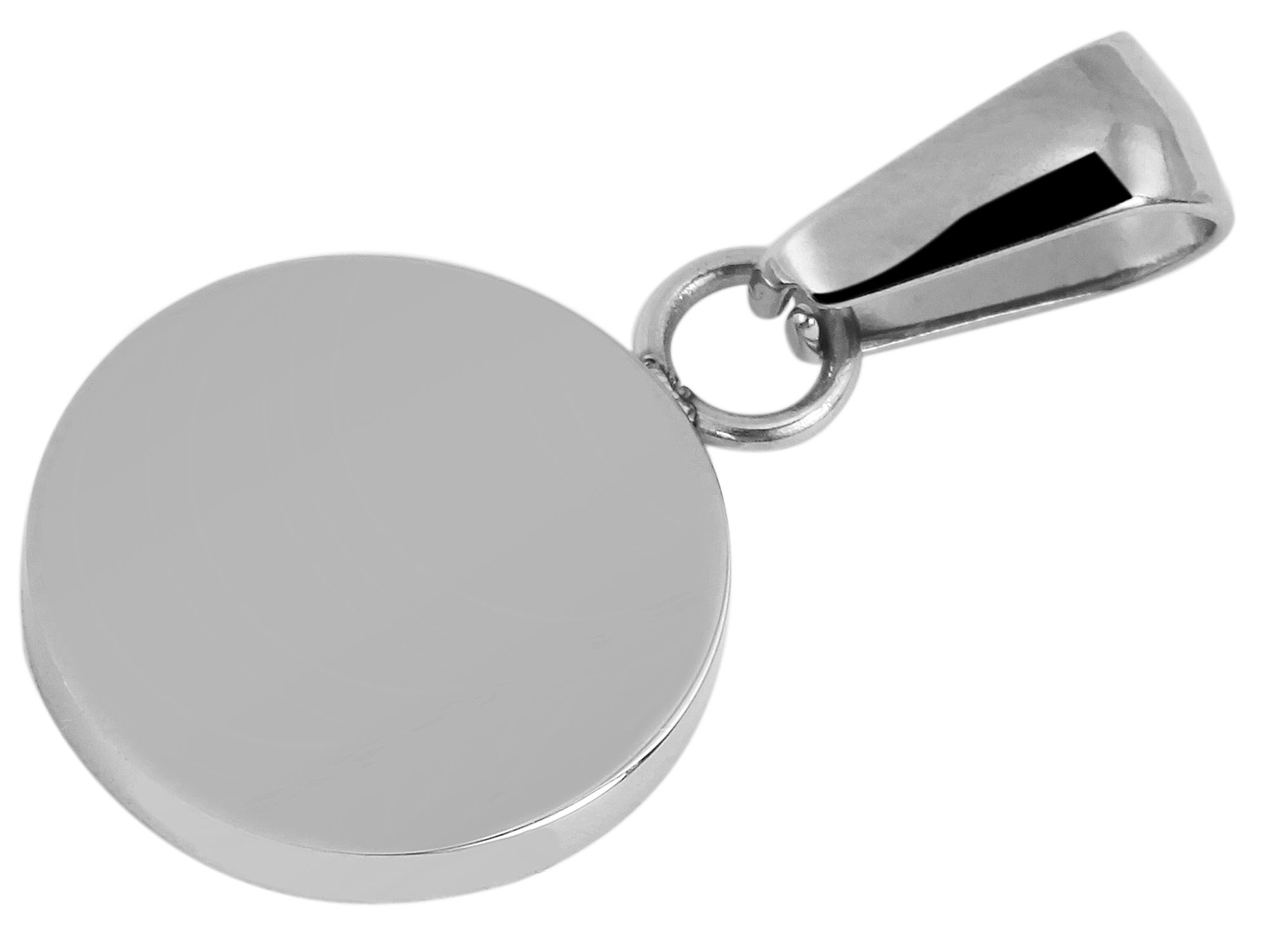 Een meesterwerk van minimalistisch design: deze ronde graveerhanger van het merk Akzent is gemaakt van hoogwaardig roestvrij staal en heeft een schitterende, hoogglans gepolijste afwerking in zilver, goud of elegant zwart. Het nauwkeurig ontworpen oppervlak heeft een diameter van 12 mm voor allerlei gravures en is een ideaal canvas voor persoonlijke boodschappen.