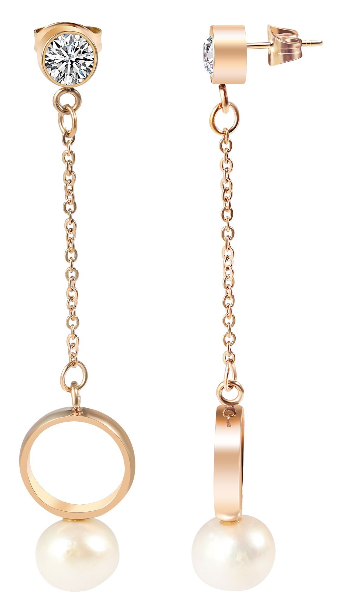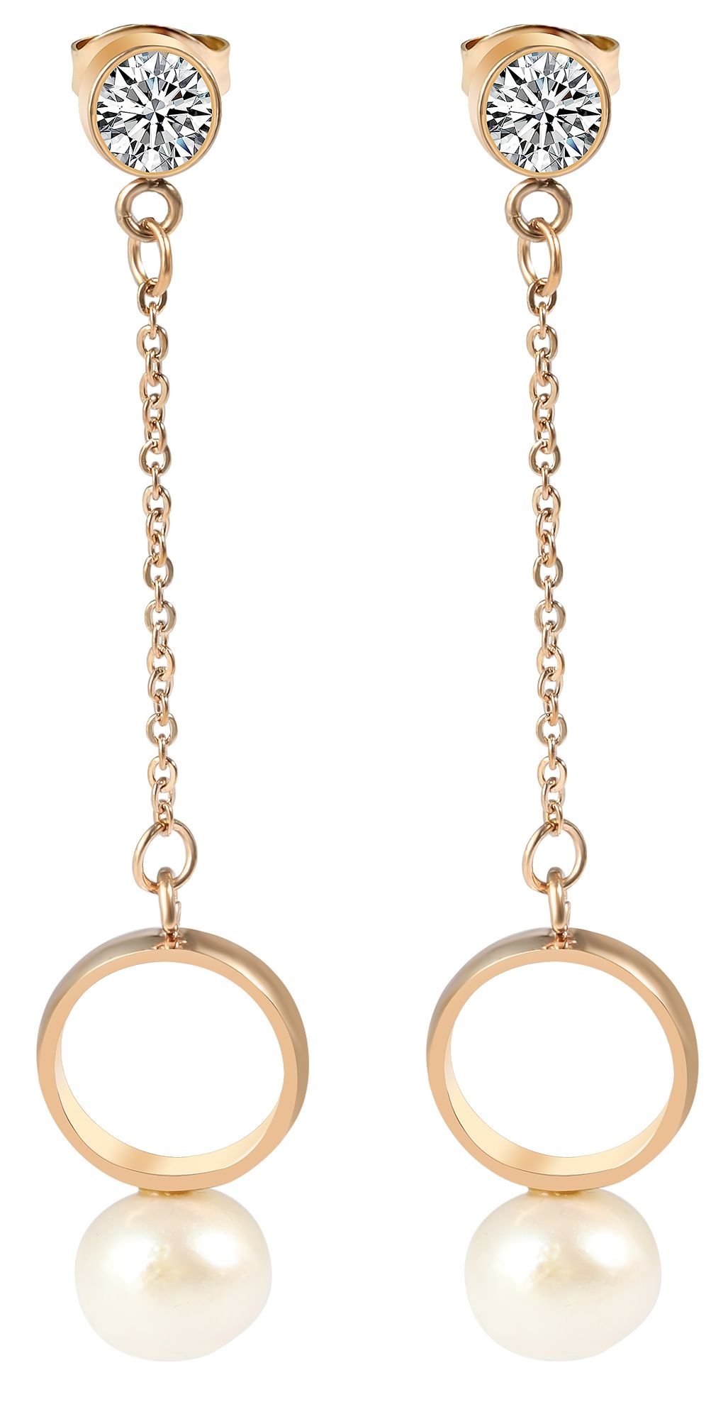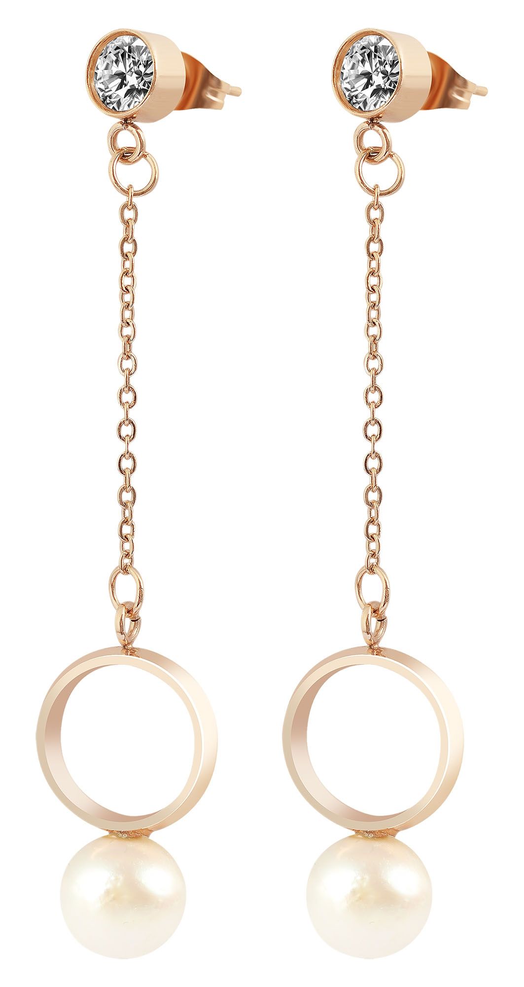 Productinformatie "Accent roestvrijstalen oorbel, parel, ring, steen, roségoudkleurig, lengte: 7 cm / breedte: 1,9 cm / dikte: 1 cm"