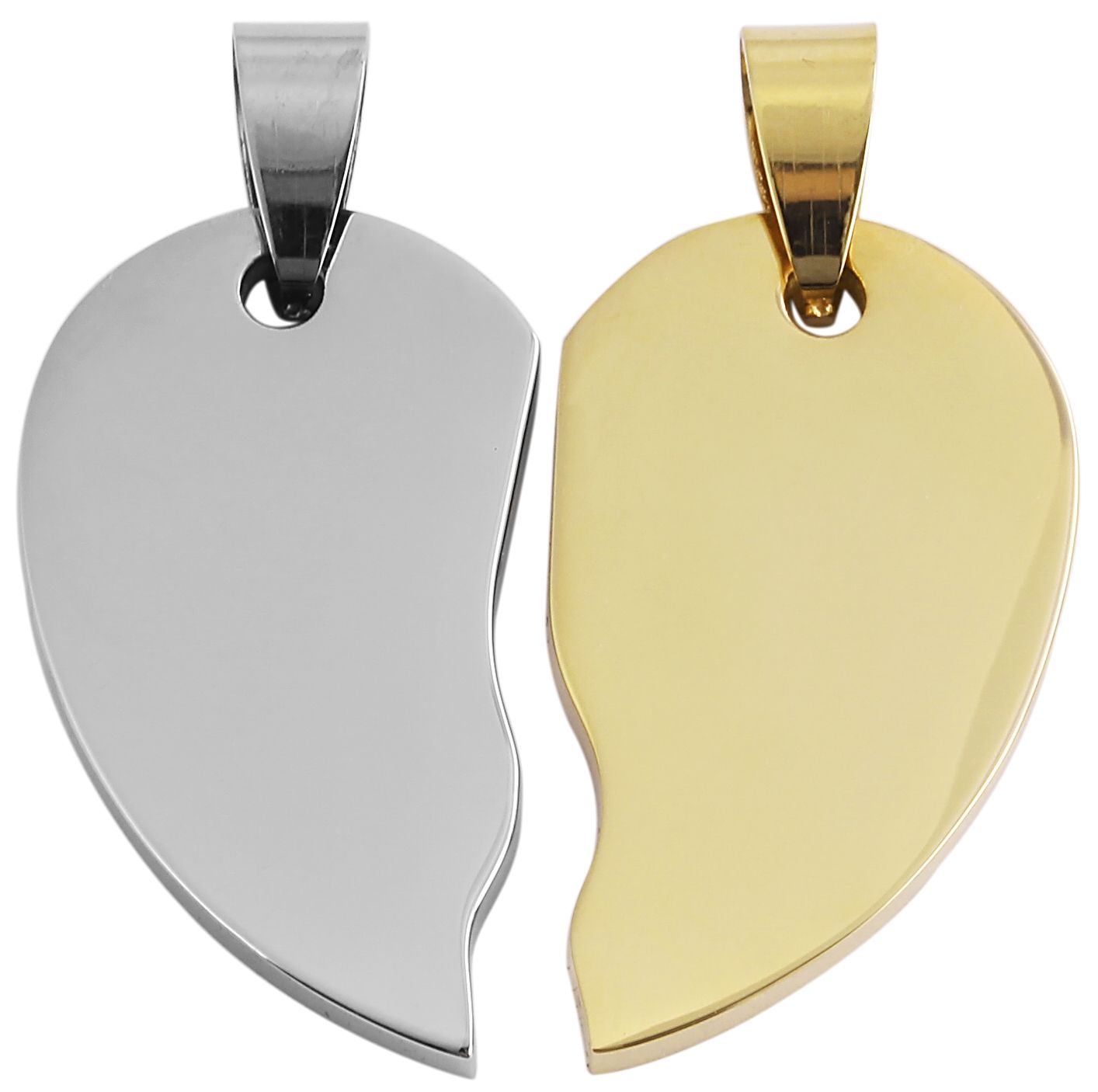 Productinformatie "Accent roestvrijstalen partnerhanger, gravure, hartvormig, zilverkleurig, goudkleurig"