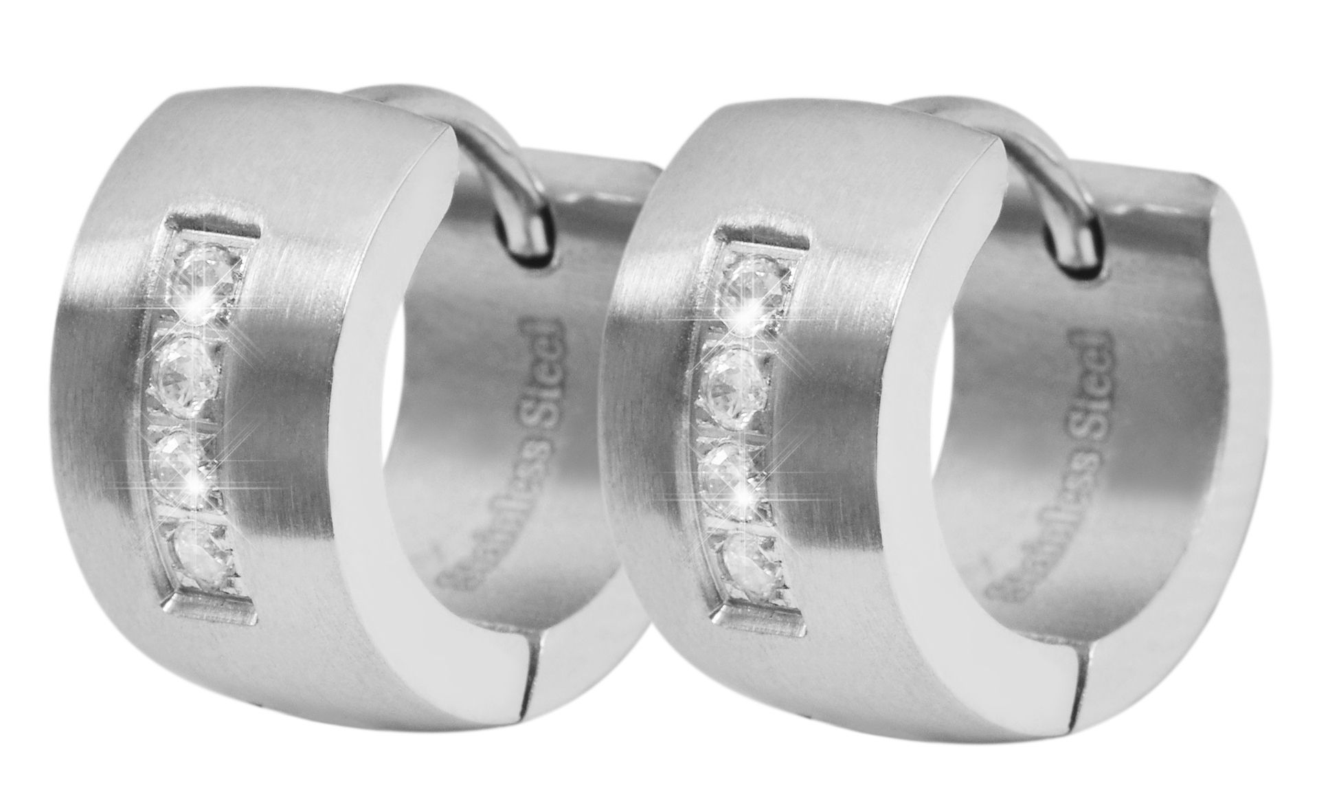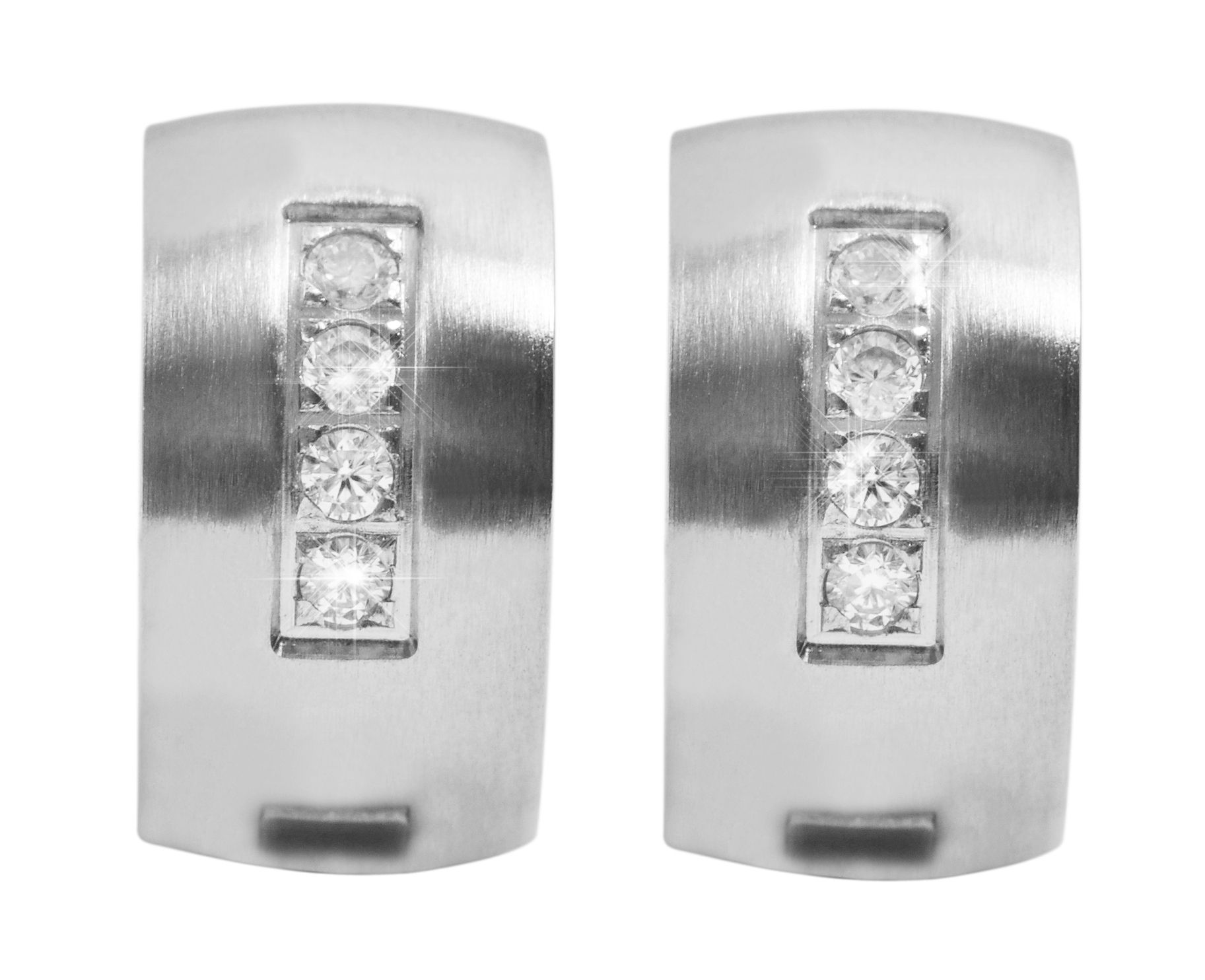De zilverkleurige hoepeloorbellen van het merk Akzent zijn gemaakt van roestvrij staal en kunnen worden geopend en gesloten met een roestvrijstalen scharniersluiting. De scharnierende hoepeloorbellen hebben een diameter van 10 mm, een breedte van 7 mm en een materiaaldikte van 2 mm. Een bijzonder opvallend kenmerk van de hoepeloorbellen zijn de 4 similisteenjes die aan de voorkant verwerkt zijn. Deze maken dit modieuze sieraad tot een bijzondere blikvanger.