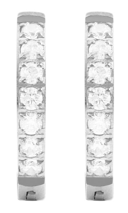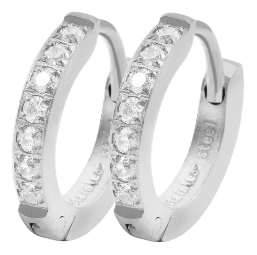 De scharnierende oorbellen met accent zijn gemaakt van roestvrij staal en zijn bovendien bezet met 7 fonkelende similisteenjes per oorbel. De kleur is zilverkleurig. Het materiaal is mat afgewerkt. De oorbellen kunnen gemakkelijk worden geopend en gesloten dankzij de scharniersluiting. Het item heeft de volgende afmetingen: Diameter: 9 mm, breedte 2 mm en dikte 2 mm.