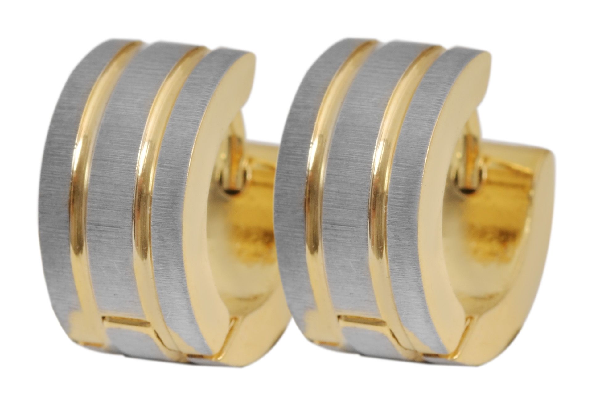 De Akzent hoepeloorbellen zijn gemaakt van roestvrij staal. Ze zijn tweekleurig en hebben een matte en gepolijste look. Het zilverkleurige oppervlak is mat en de goudkleurige strepen zijn gepolijst. De buitenste randen glanzen ook in goudkleurig roestvrij staal. Dit ontwerp geeft de scharnierende hoepeloorbellen een speciale look en maakt ze tot een geweldige highlight. De afmetingen komen voort uit een diameter van 9,5 mm, een breedte van 6 mm en een materiaaldikte van 2 mm.