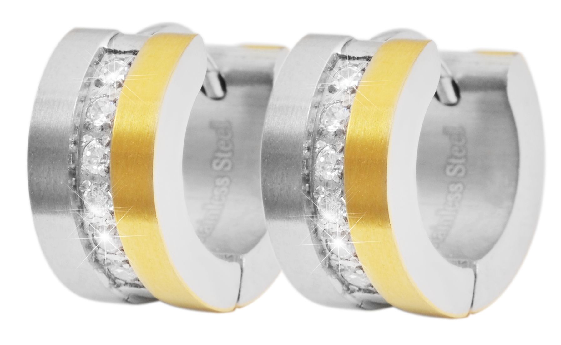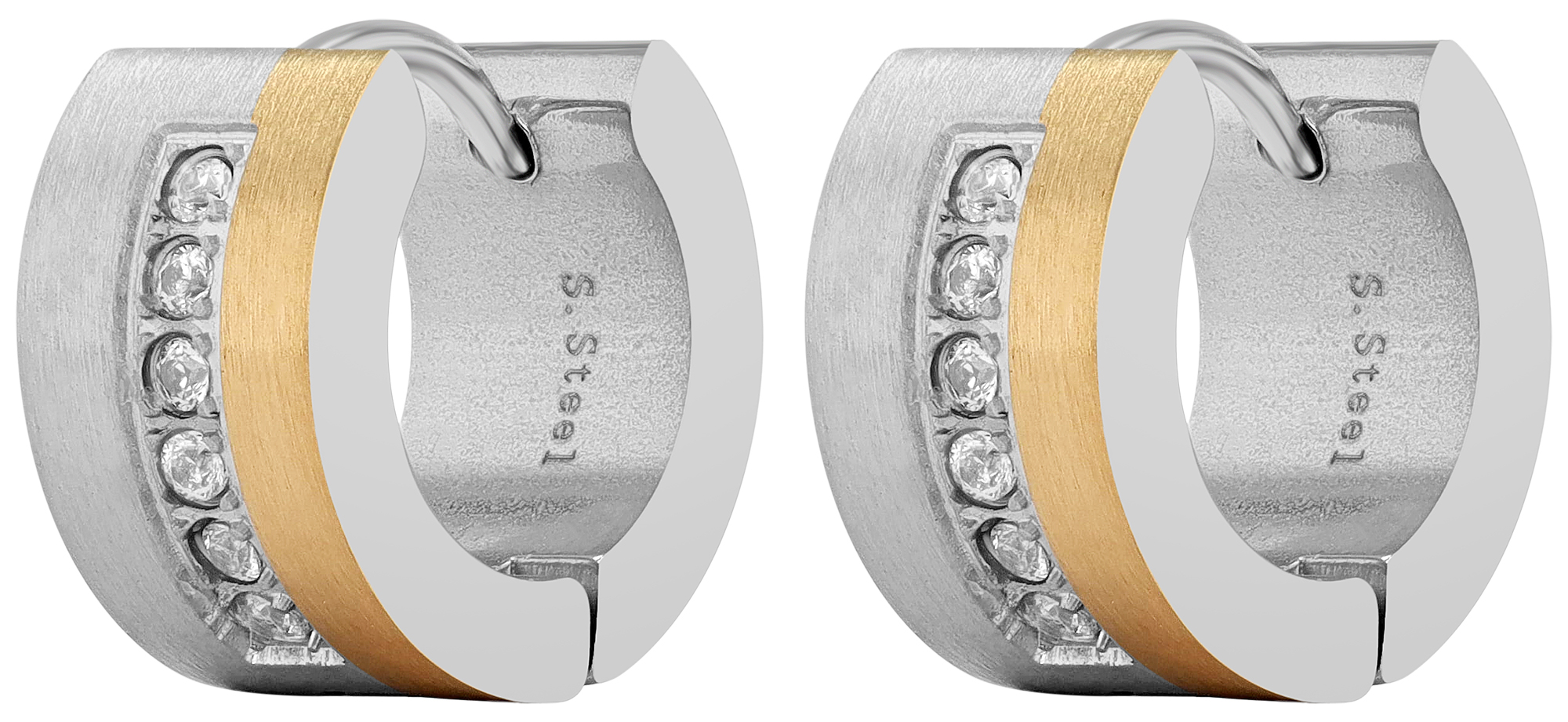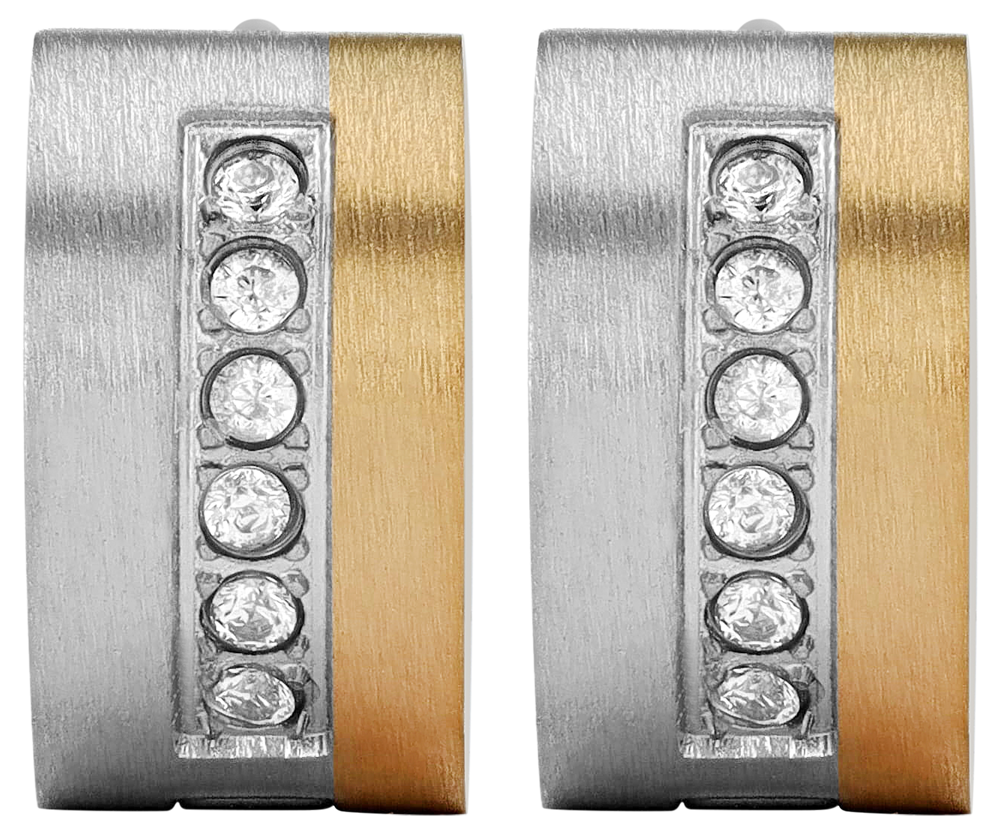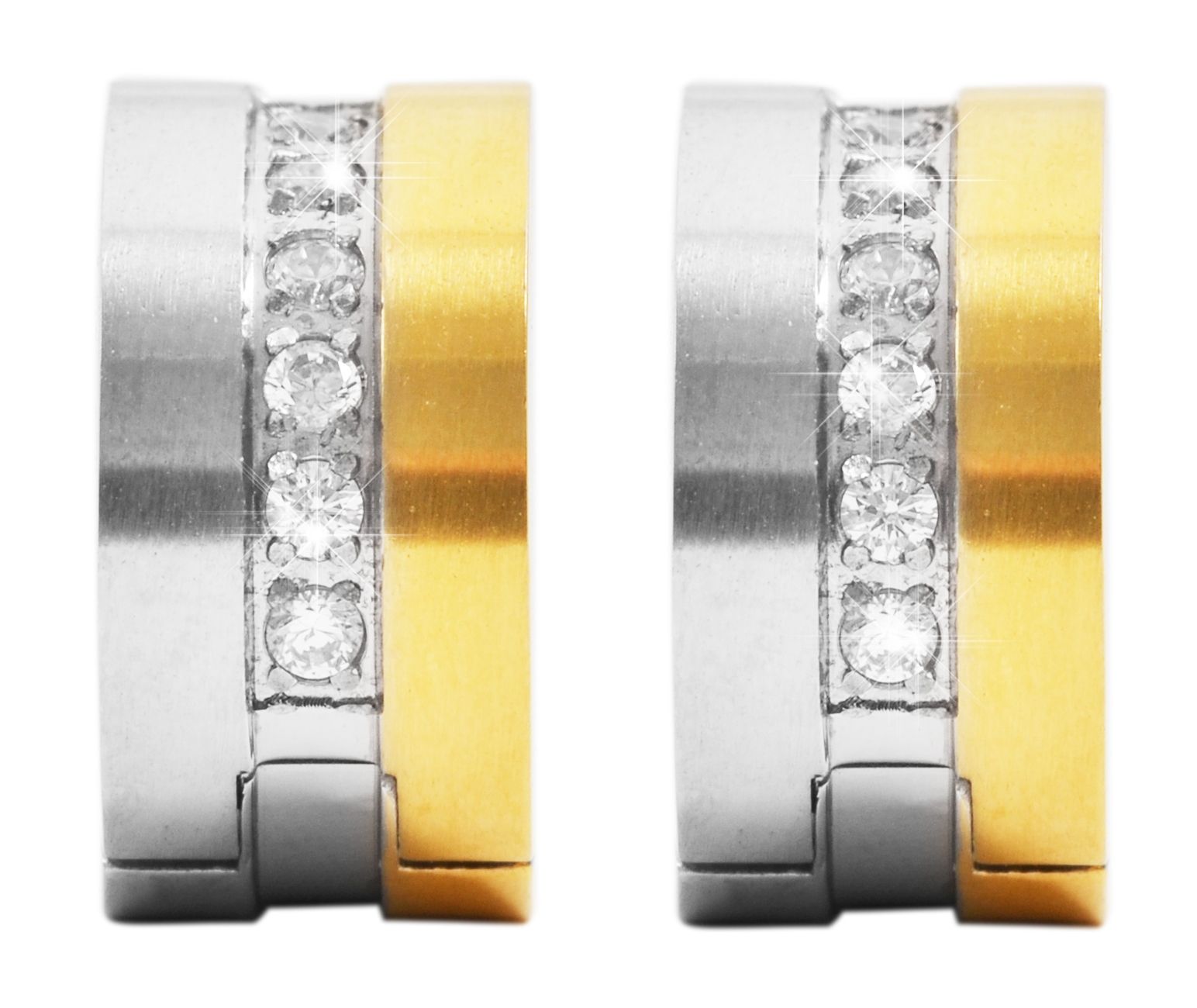 Productinformatie "Accent scharnierende hoepel oorbellen met similibre zetting, roestvrij staal, tweekleurig"