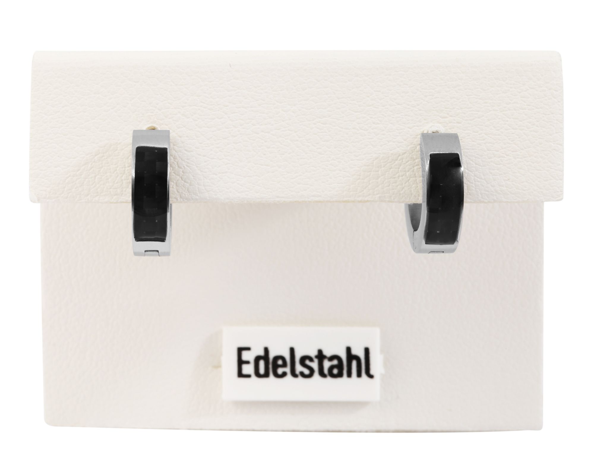 Productinformatie "Accent scharnierende hoepeloorbellen van roestvrij staal, carbonlook, zilverkleurig"