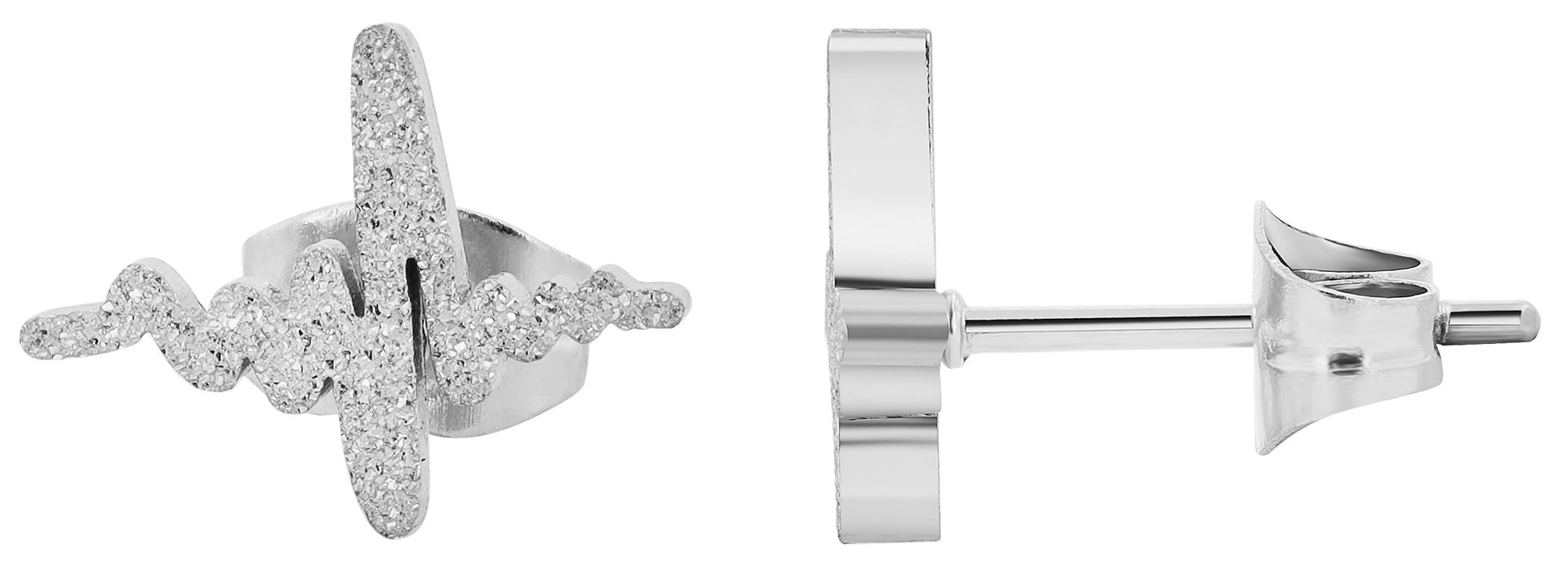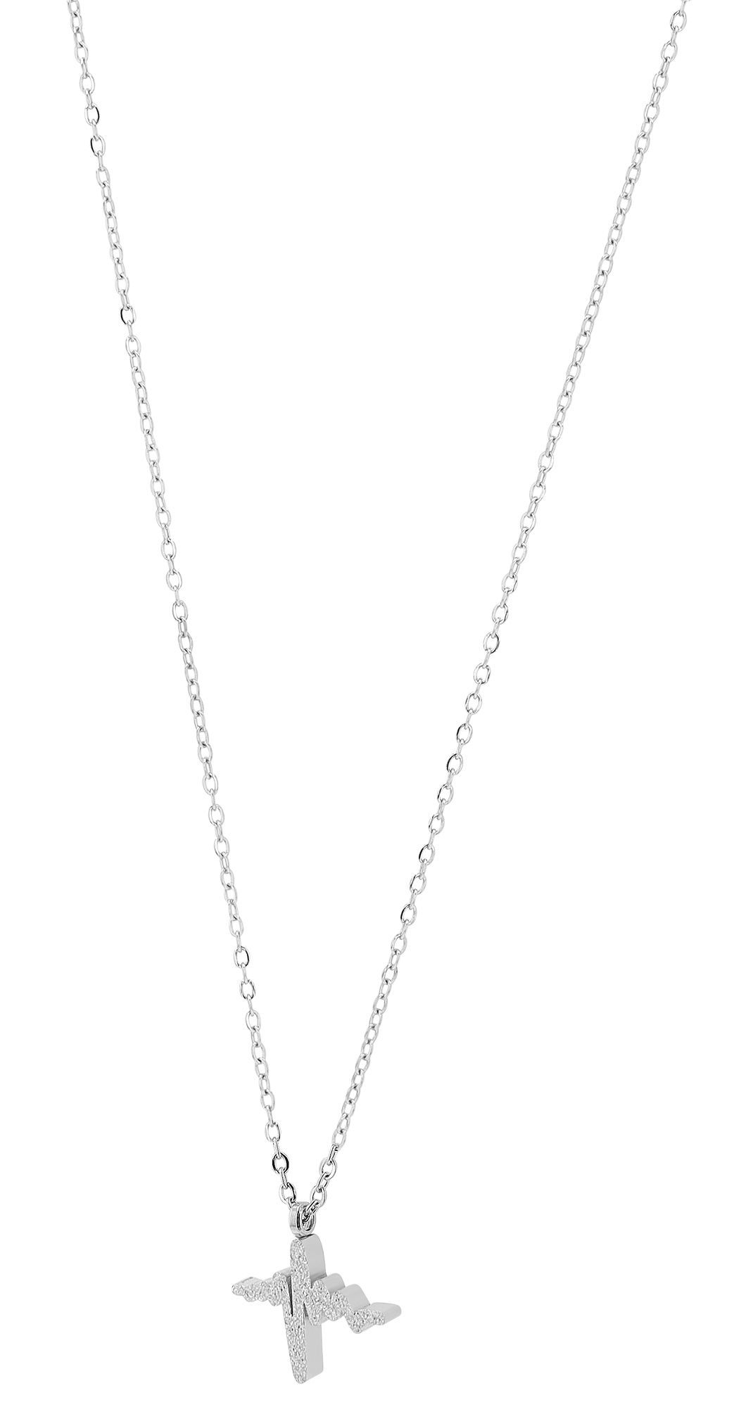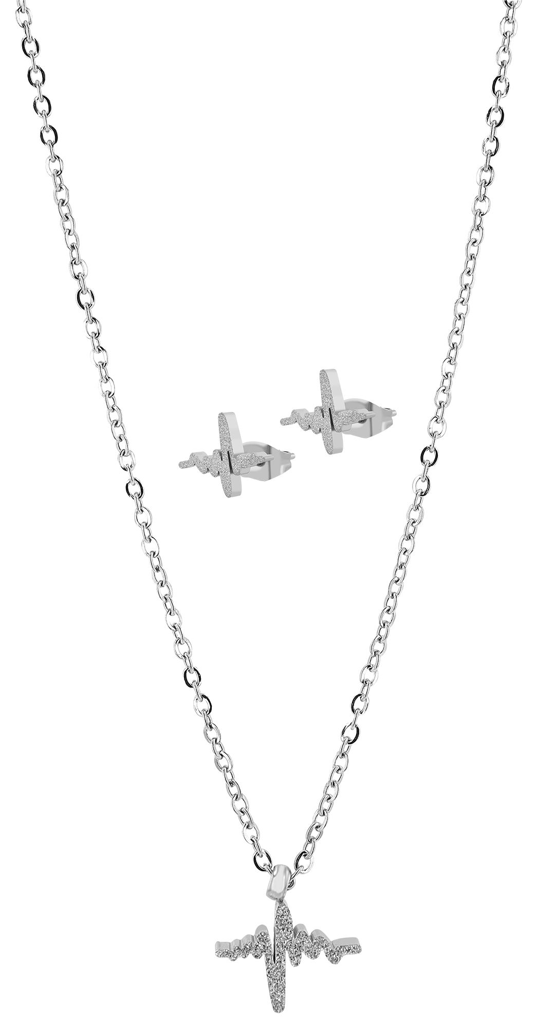 Productinformatie "Accent sieradenset "Cara", halsketting & oorstekers, roestvrij staal, hartslag, gezandstraald, zilverkleurig"