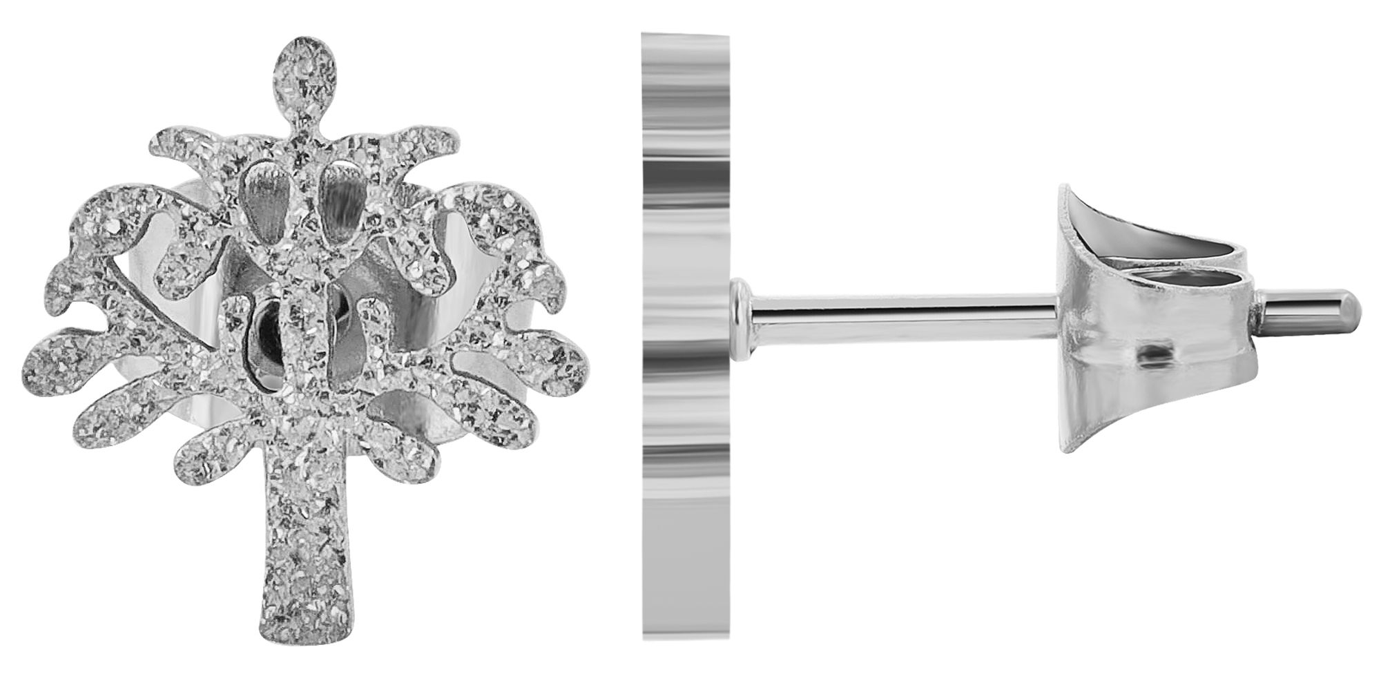 De 45 cm lange ketting wordt gesloten met een karabijnsluiting en siert het decolleté met een levensboomhanger van 14,5 x 11 x 2 mm. De bijpassende oorstekers meten 9 x 8,5 x 2 mm en zijn niet alleen een discrete highlight, maar worden ook stevig op hun plaats gehouden door een vleugelschroef en een extra oormoer met een siliconen plaatje. Door de kleurkeuze tussen zilver en goud kan de sieradenset naar wens gecombineerd worden, waardoor hij bijzonder veelzijdig is.