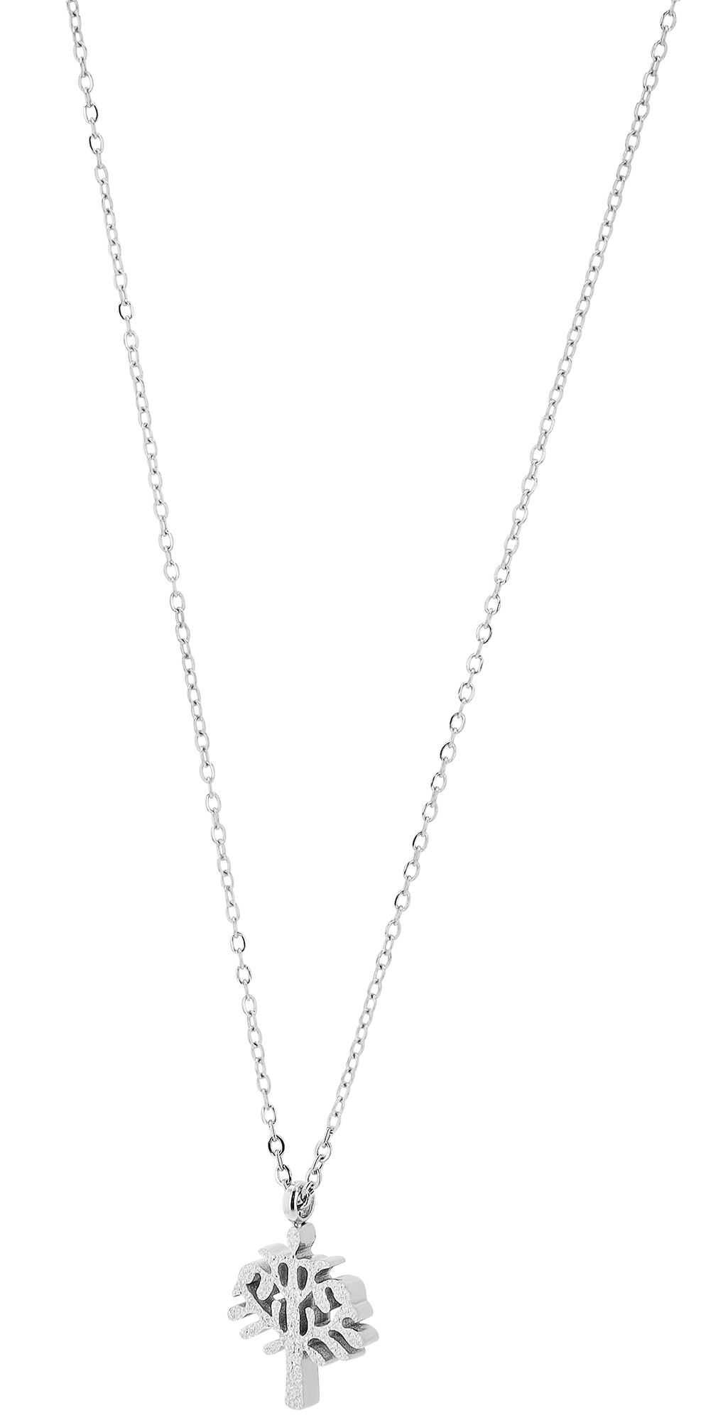 Productinformatie "Accent sieradenset "Lea" van roestvrij staal, ketting & oorbellen met levensboom, gezandstraald, zilverkleurig"