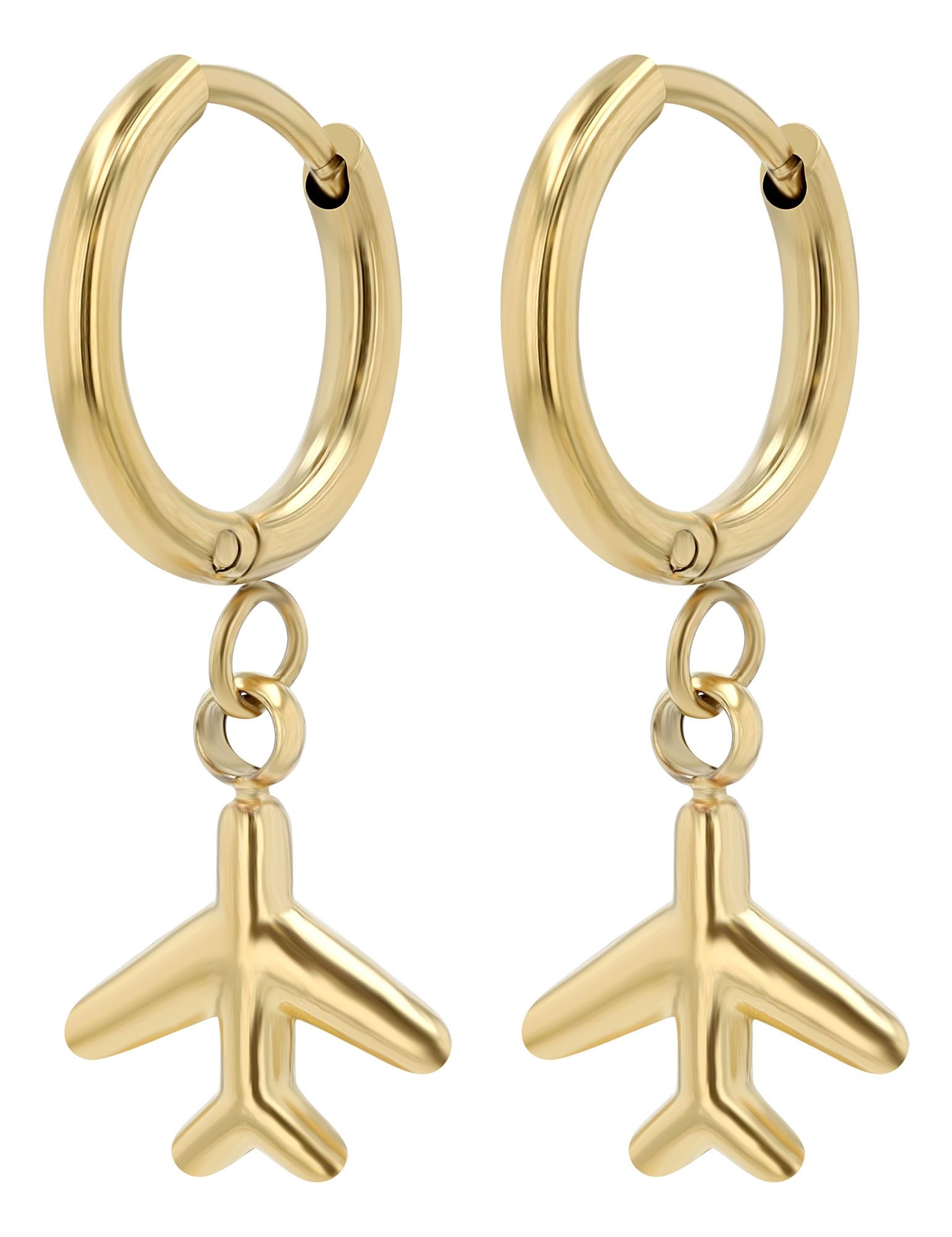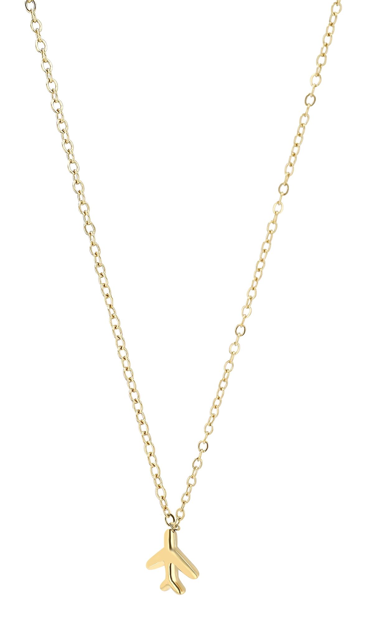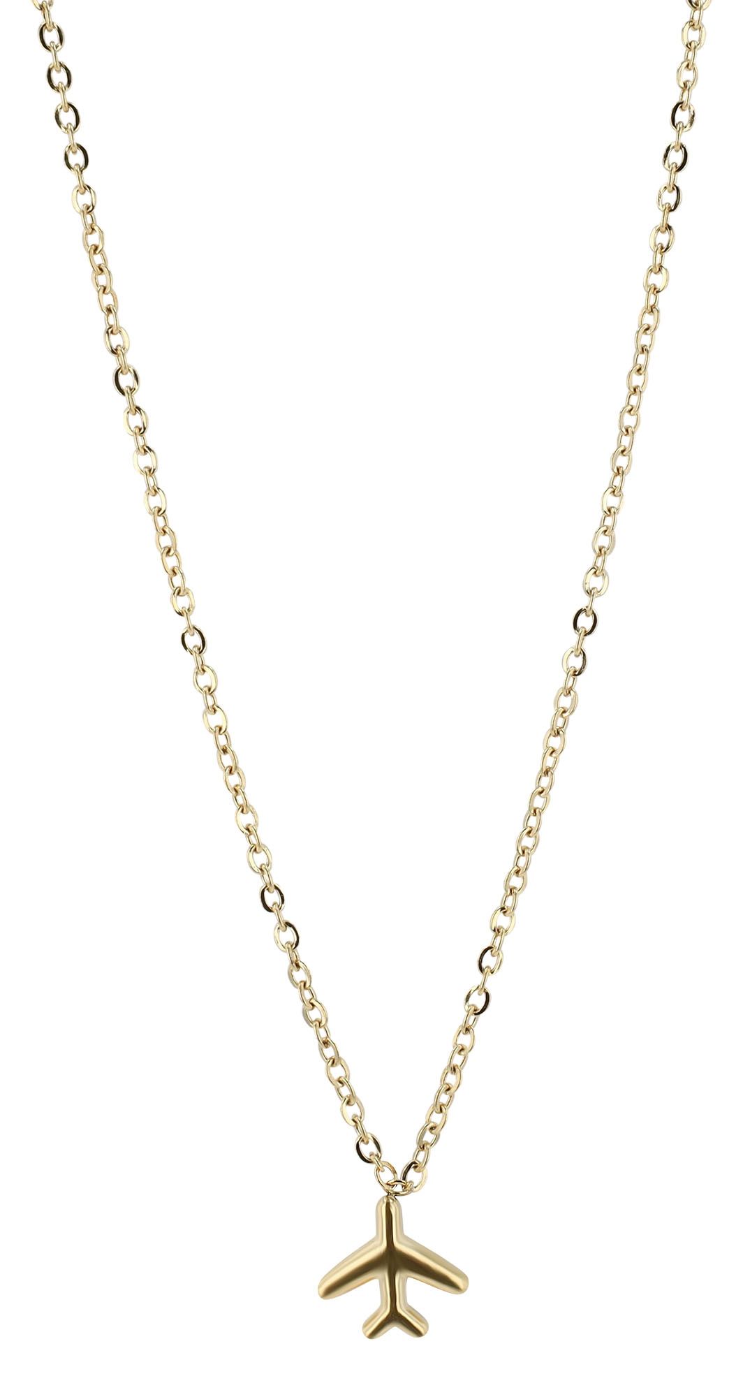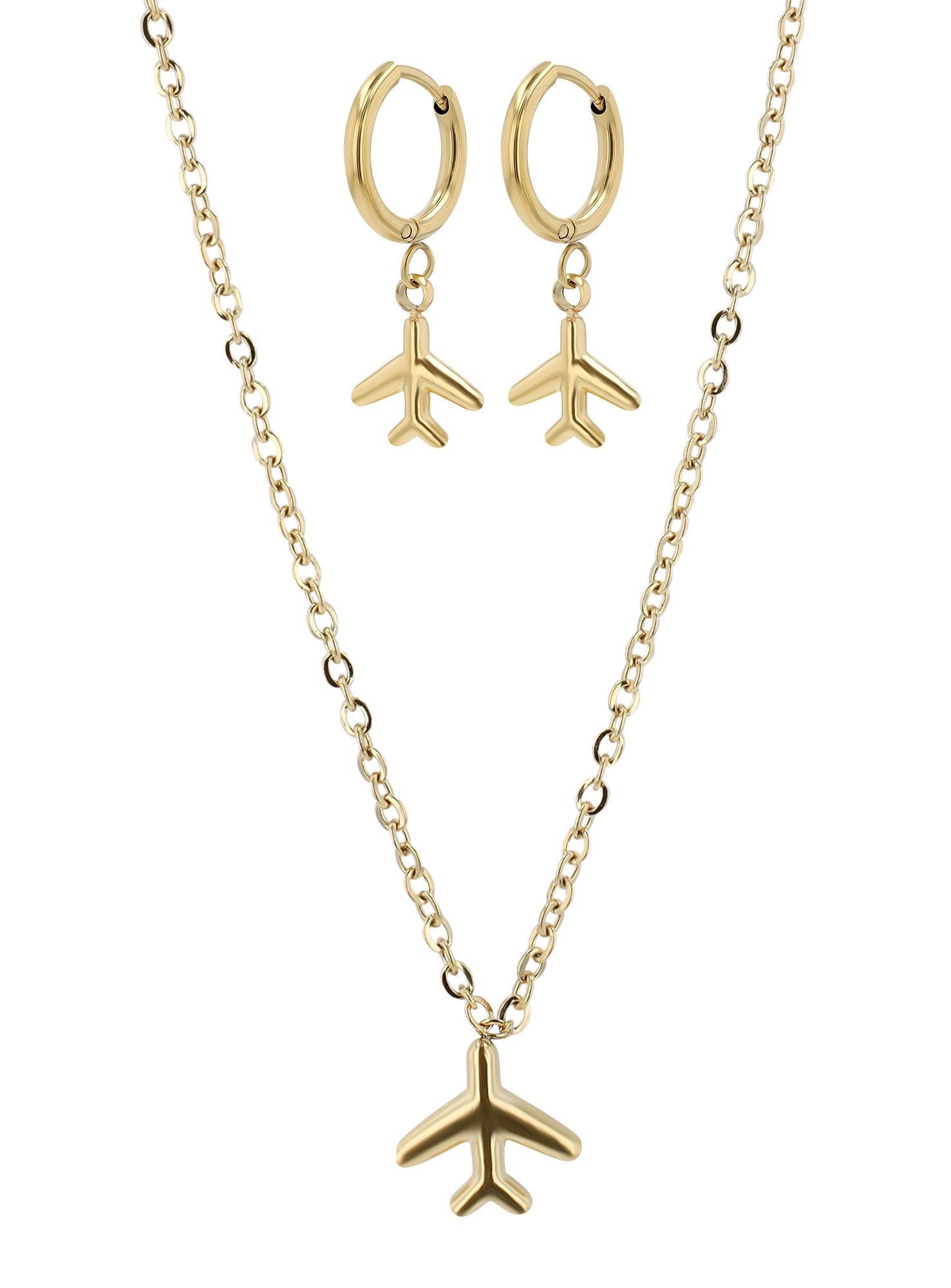 Productinformatie "Accent sieradenset "Skye", roestvrij staal, halsketting & hoepeloorbellen met vliegtuigen, goudkleurig"
