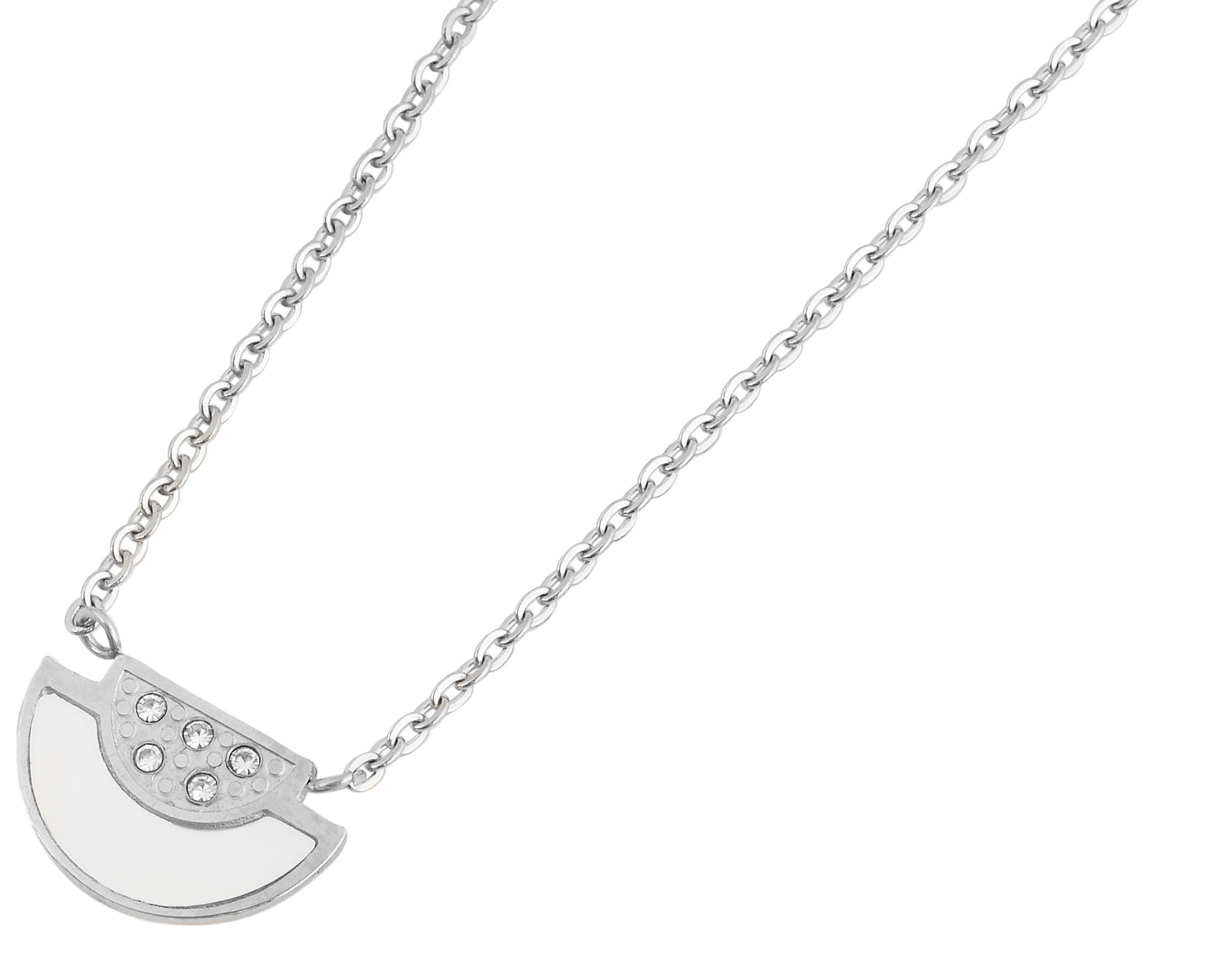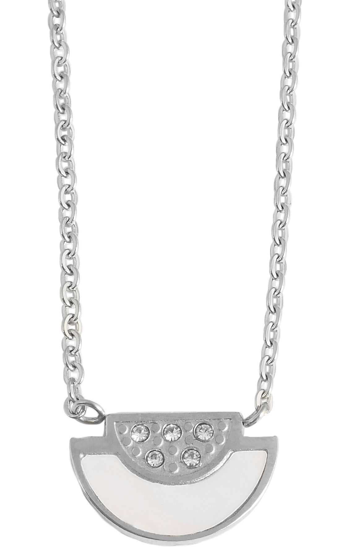 Productinformatie "Accent sieradenset van roestvrij staal, halsketting en oorbellen met similibre afwerking, 46+5 cm, zilverkleurig"