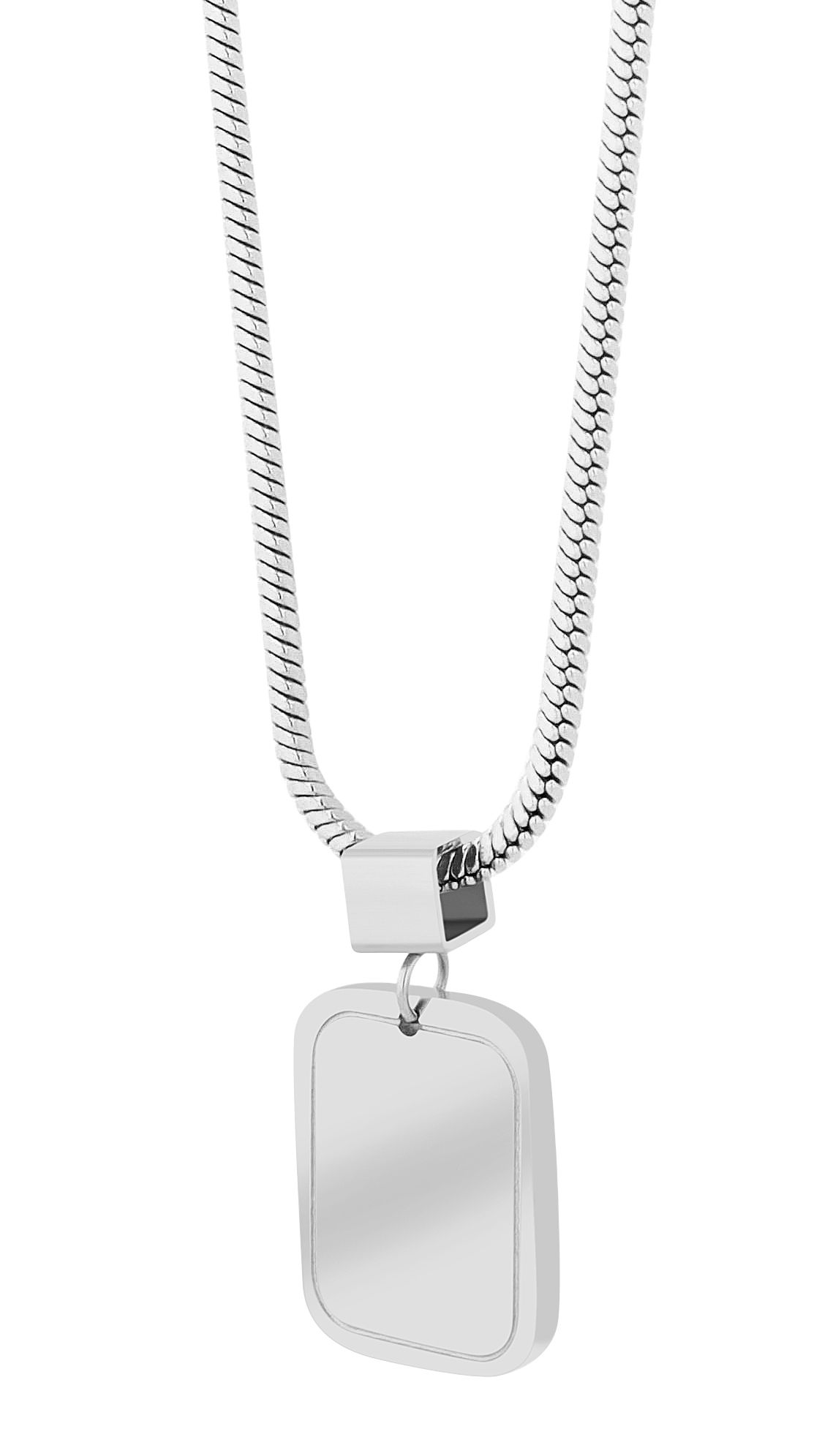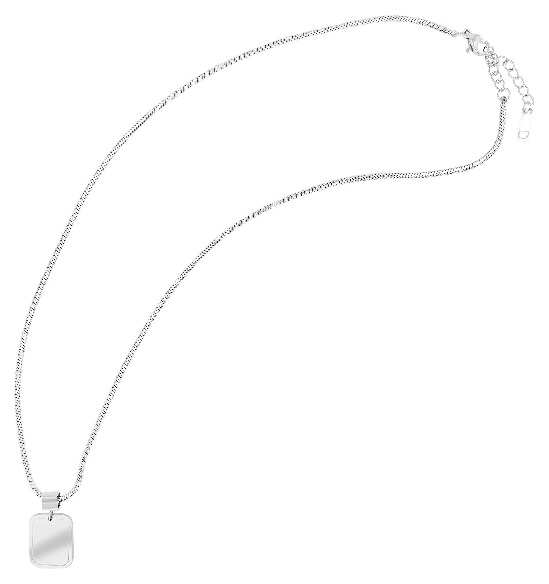 Productinformatie "Accent slangenketting, vierkant, roestvrij staal, graveerhanger, 45+5 cm, zilverkleurig"