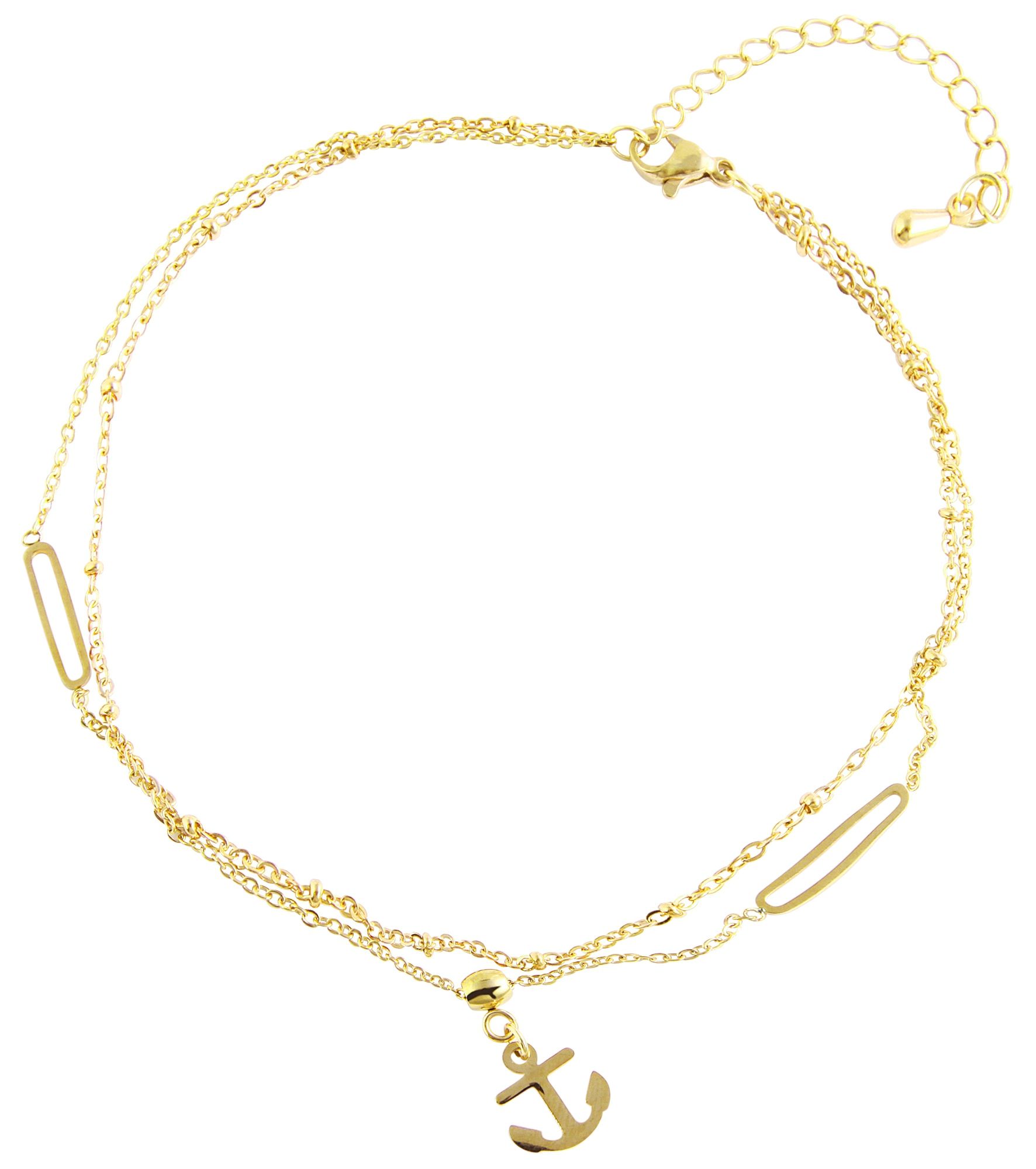 Productinformatie "Accent stainless steel enkelband, ankerhanger, goudkleurig"
