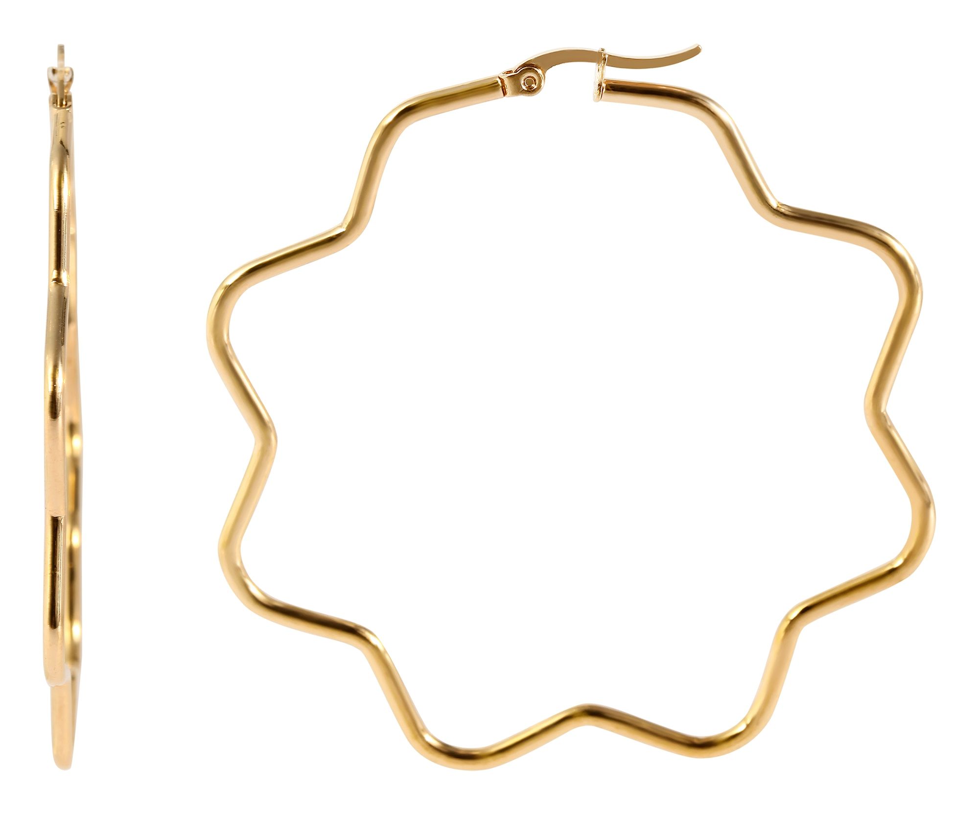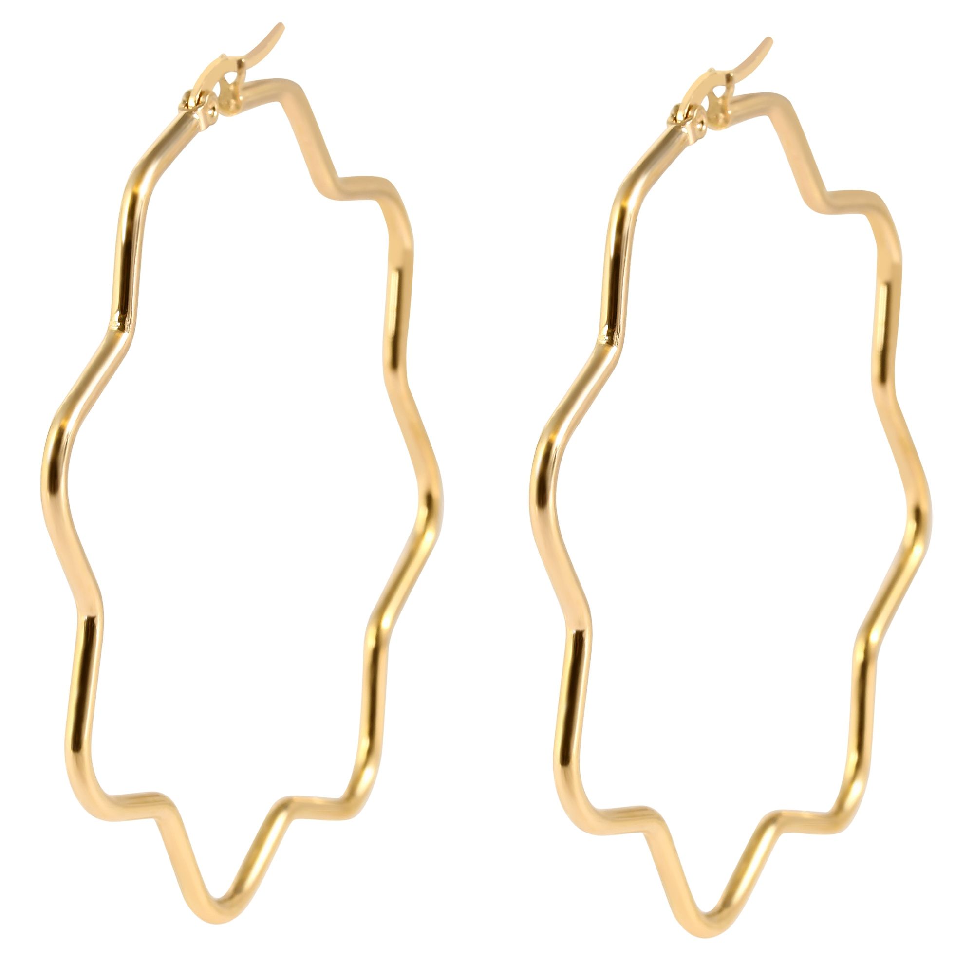 Productinformatie "Accent stainless steel hoepel oorbellen, bloem, 65 mm, goudkleurig"