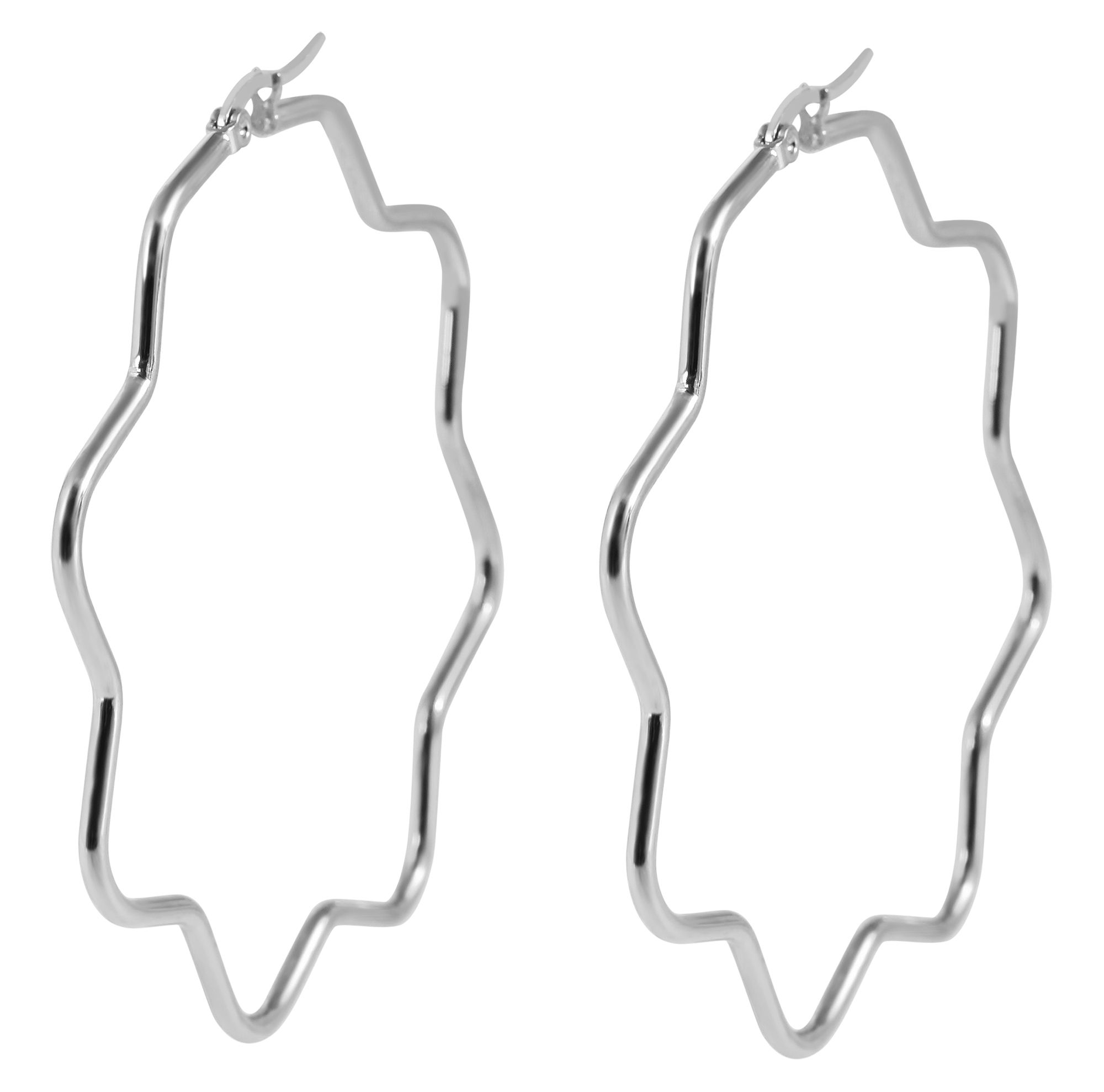 Productinformatie "Accent stainless steel hoepel oorbellen, bloem, 65 mm, zilverkleurig"