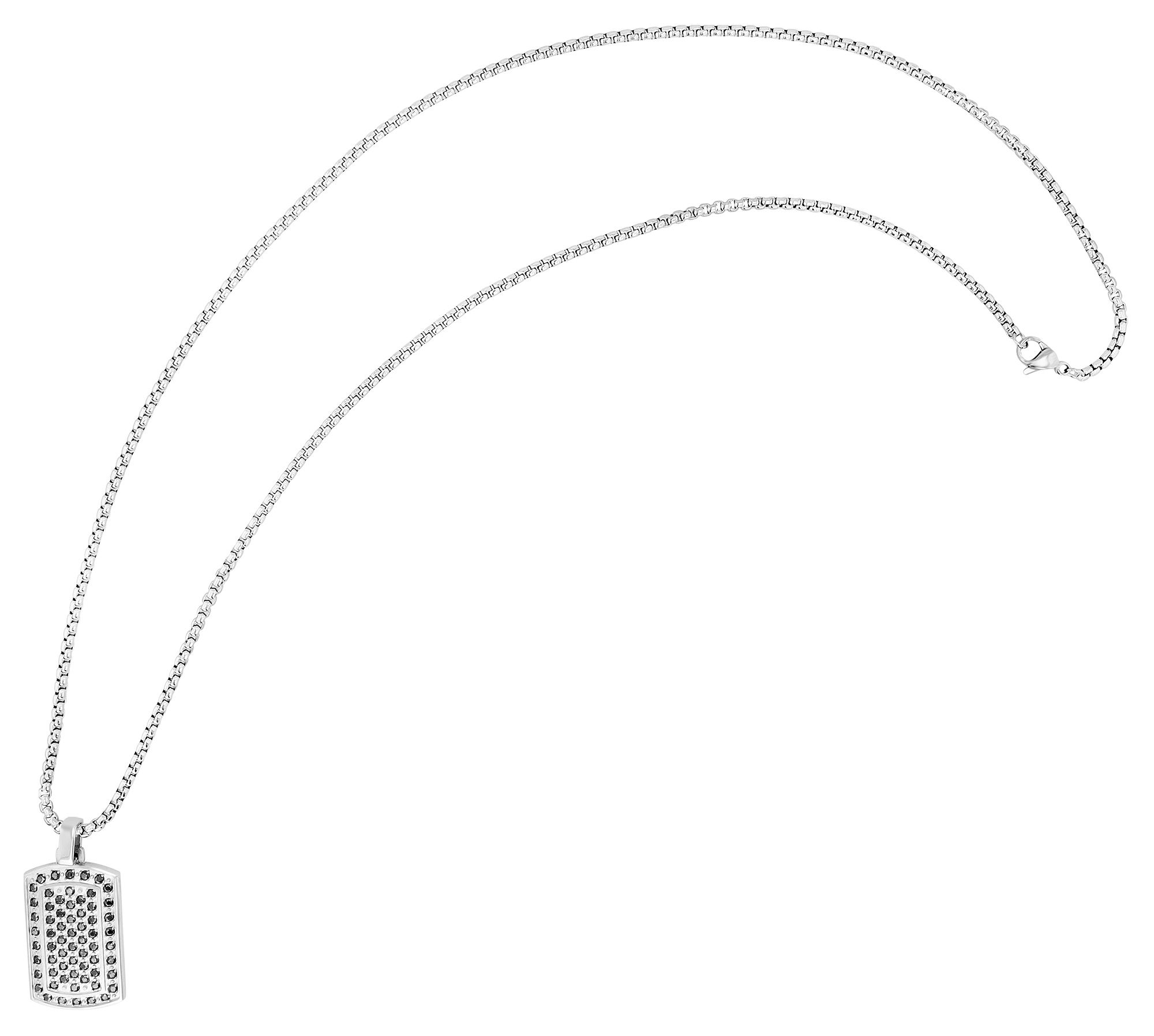 De zilverkleurige "Gadi" ketting van het merk Akzent belichaamt de tijdloze schoonheid van roestvrij staal, een materiaal dat niet alleen bekend staat om zijn robuustheid maar ook hypoallergeen is. De 3 mm dikke Venetiaanse ketting is 60 cm lang en kan worden geopend en gesloten met een roestvrijstalen karabijnsluiting. De karabijnsluiting maakt het niet alleen gemakkelijk om de ketting om te doen en af te doen, maar zorgt ook voor een stevige grip. De zilverkleurige dog tag hanger met een lengte van 34 mm, een breedte van 19,5 mm en een materiaaldikte van 3 mm kan naar wens op de achterkant worden gegraveerd, waardoor het een individueel sieraad wordt. De voorkant van de hanger is ook versierd met fonkelende zwarte similstenen.