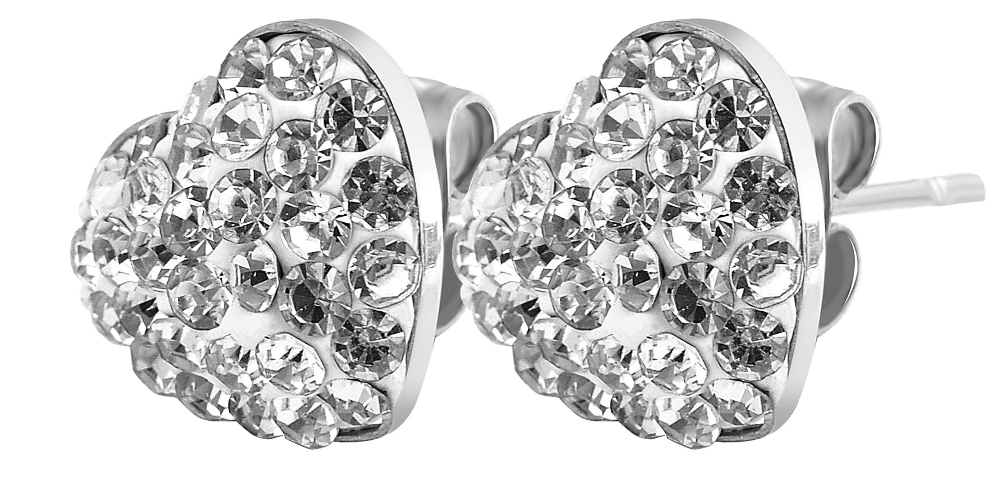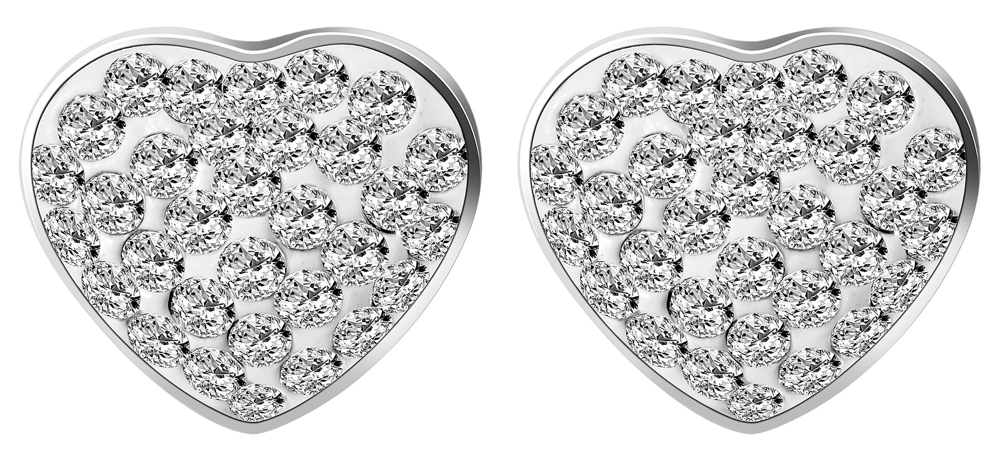 Productinformatie "Accent stainless steel oorbellen hart met 58 zirkonia steentjes, zilverkleurig"