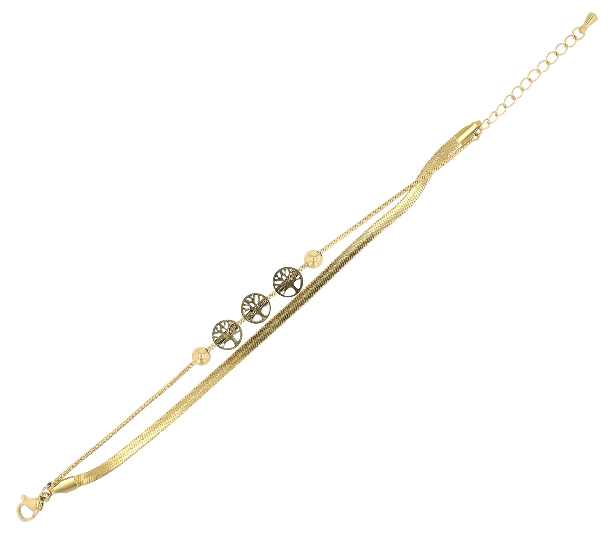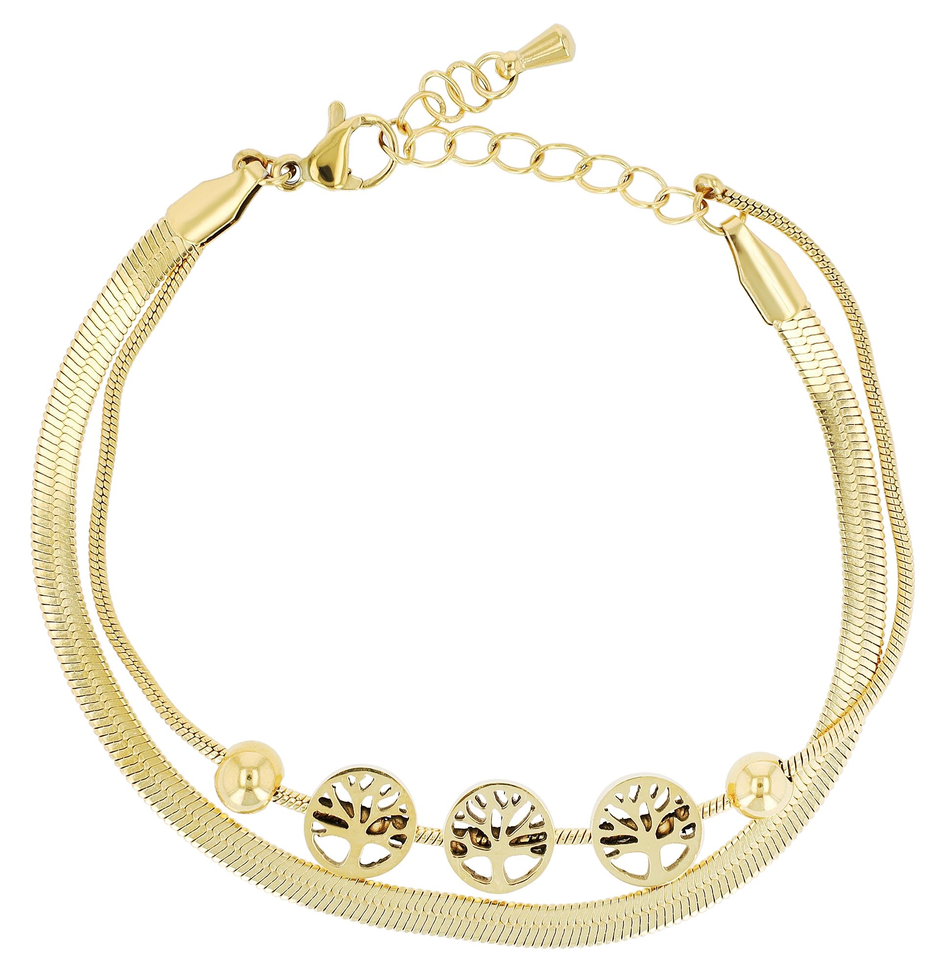 Productinformatie "Accentarmband "Fiore" van roestvrij staal, dubbele rij, 16 + 4 cm, goudkleurig"