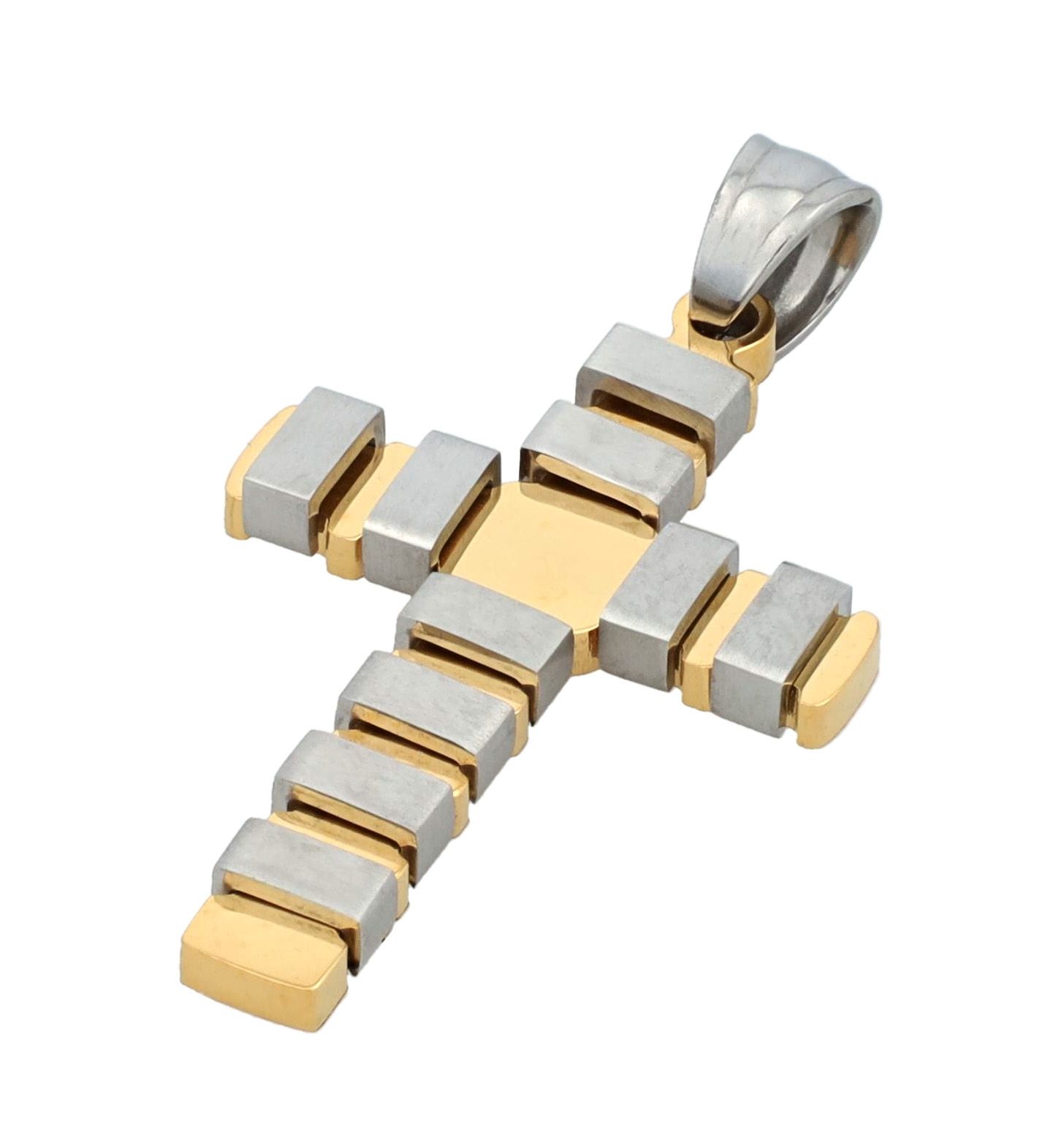 Productinformatie "Accentkruis "Arden", roestvrijstalen hanger, matte en gepolijste elementen, tweekleurig (zilver- en goudkleurig)"