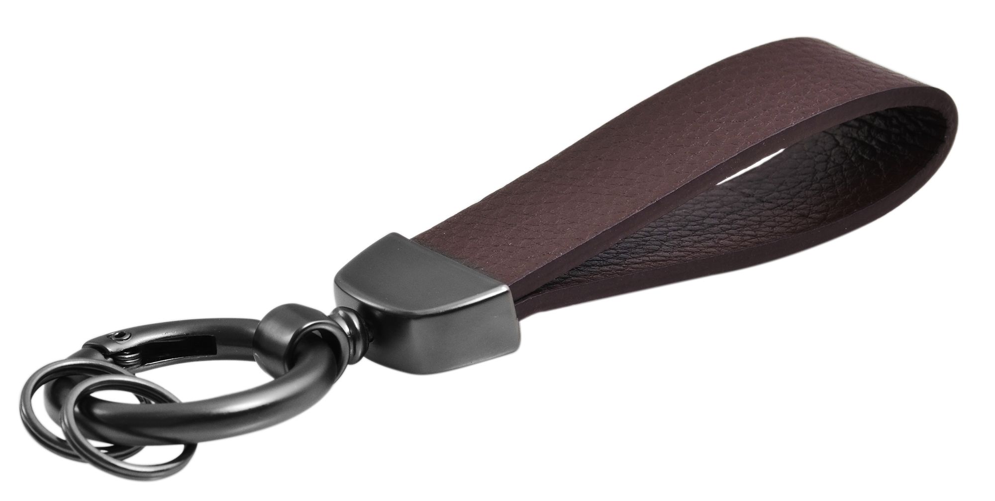 Productinformatie "Accentsleutelhanger van echt leer en roestvrij staal, bruin"