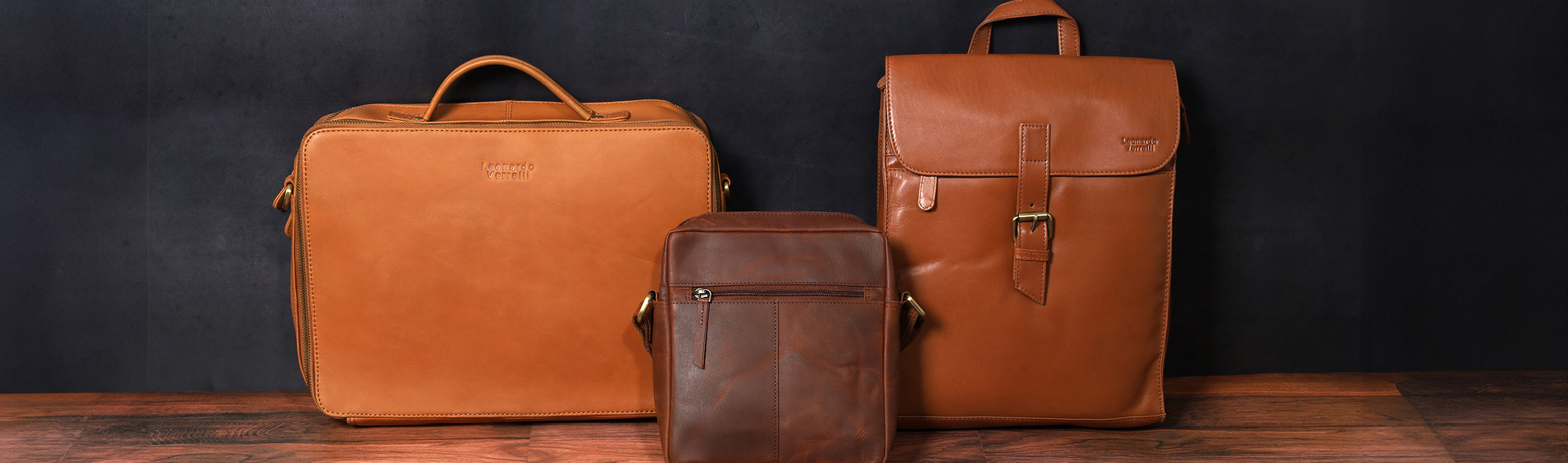 "Stella" Leonardo Verrelli Unisex Echtledertasche, cognac